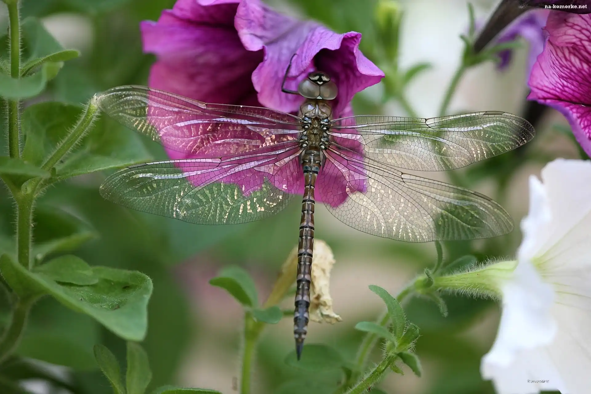 Kwiaty, Surfinie, Ważka na Komórkę