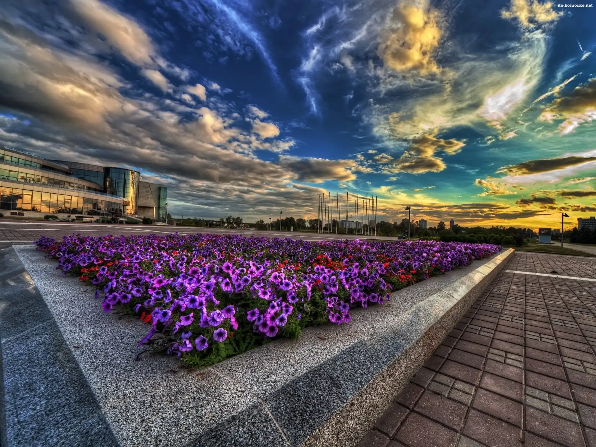Taras, Kwiaty, Surfinie Zachód Słońca, Chmura Chmury Kanada, Chmura, Góry Chmura Niebieski, Bukiet, Surfinia, Wazon, Kwiaty, Różowe Zachód Słońca, Chmura, Morze Niebieskie, Przyroda, Kwiaty, Surfinie, Różowe Kolorowe, Tęcze, Chmurki Grafika 2D Niebieska, Słońce, Surfinia, Promienie Niebo, Drzewa, Zima, Kolorowe Góry, Farmy i pola, Chmura, Krzew Różowe, Niebo, Kwiaty, Chmury Alpy, Chmury, Góry