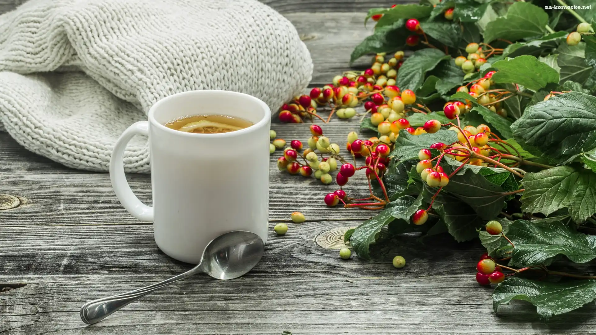 Sweter, Kubek, Herbata, Deski, Łyżeczka, Jagody na Komórkę