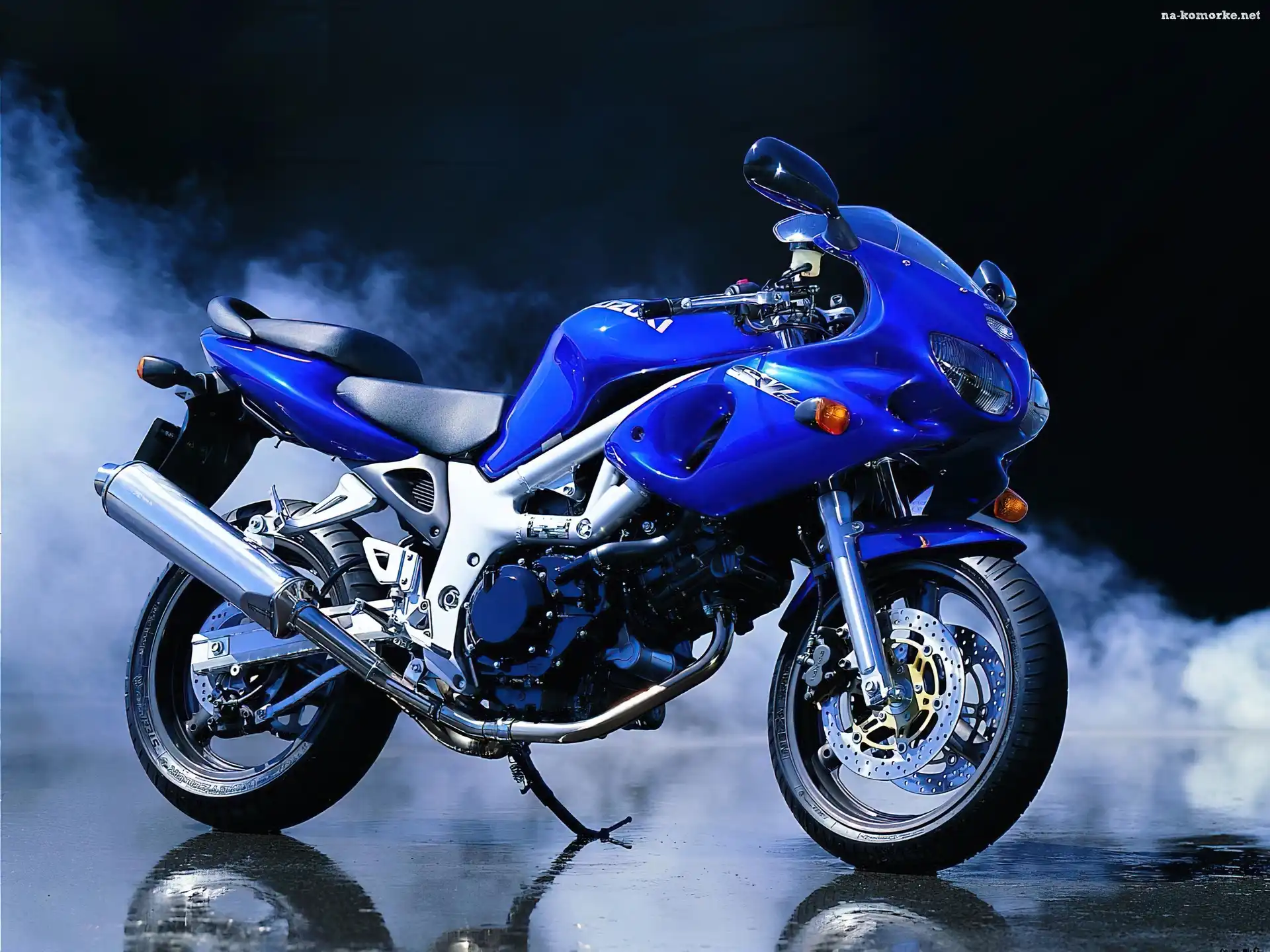 lusterka, Motory Suzuki, niebieski , tłumik , opony, kierownica, koła, siedzenie, światła na Komórkę |