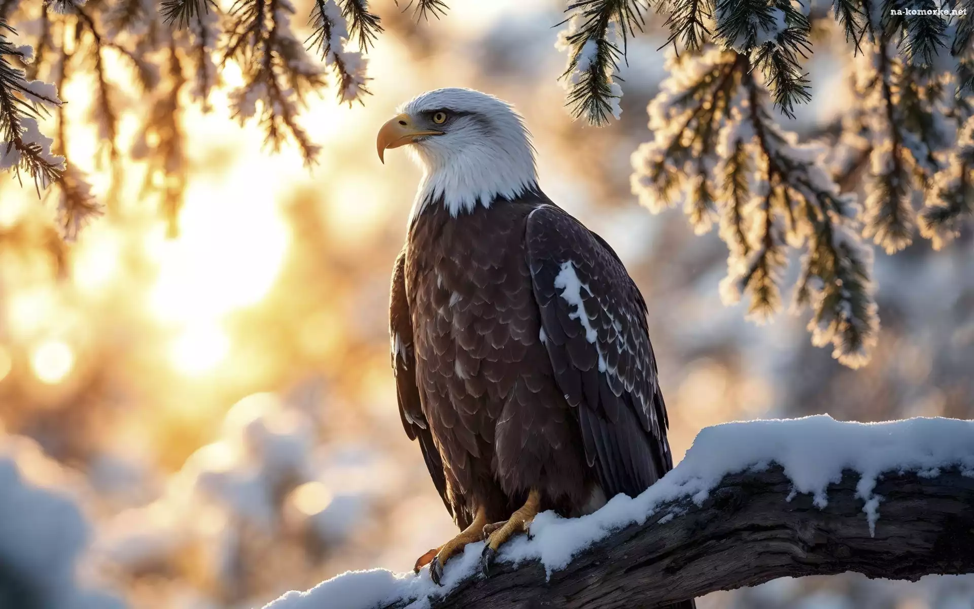 Śnieg, Ptak, Gałązki, Światło, Konar, Bielik amerykański na Komórkę