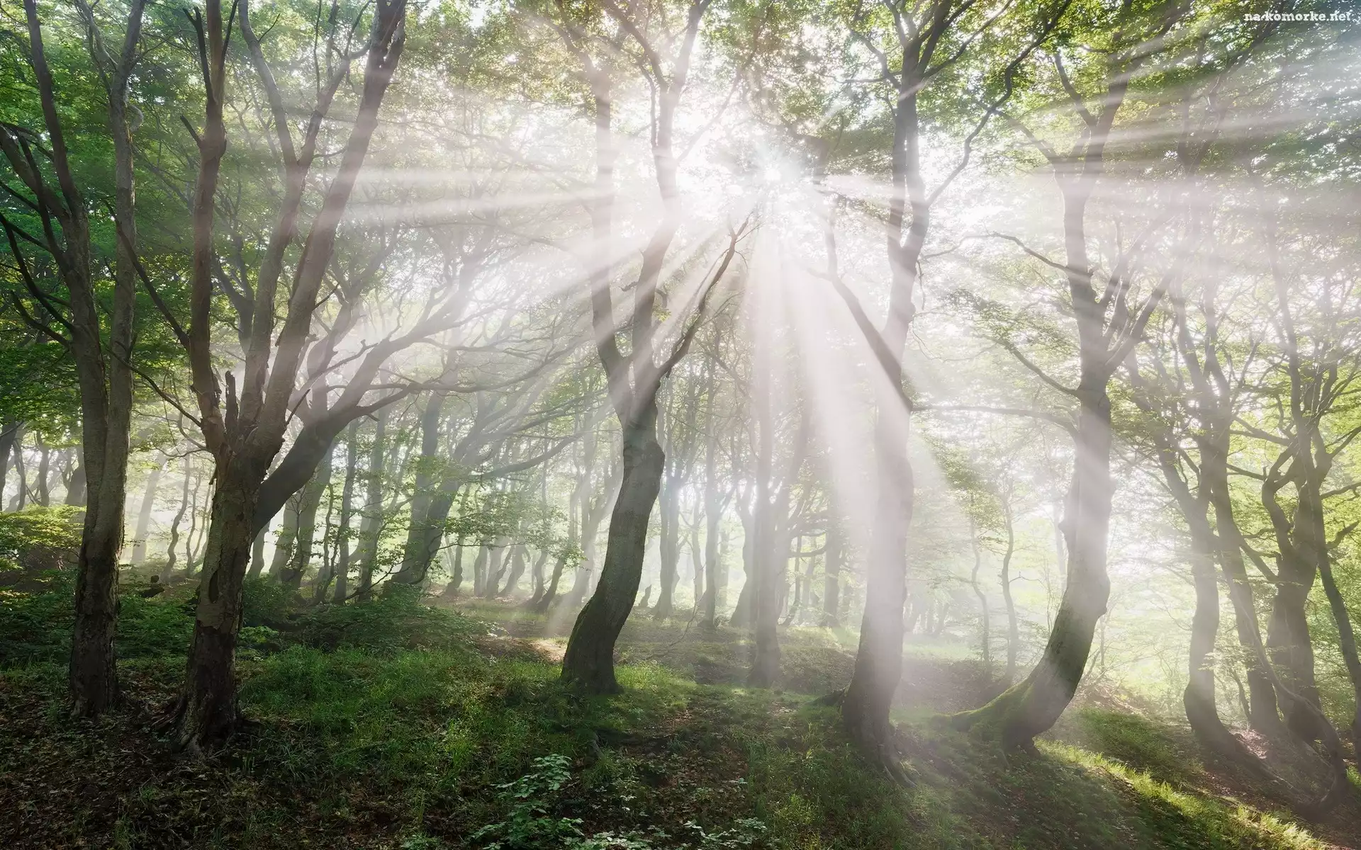 Las, Promienie słońca, Światło, Drzewa, Słoneczne na Komórkę