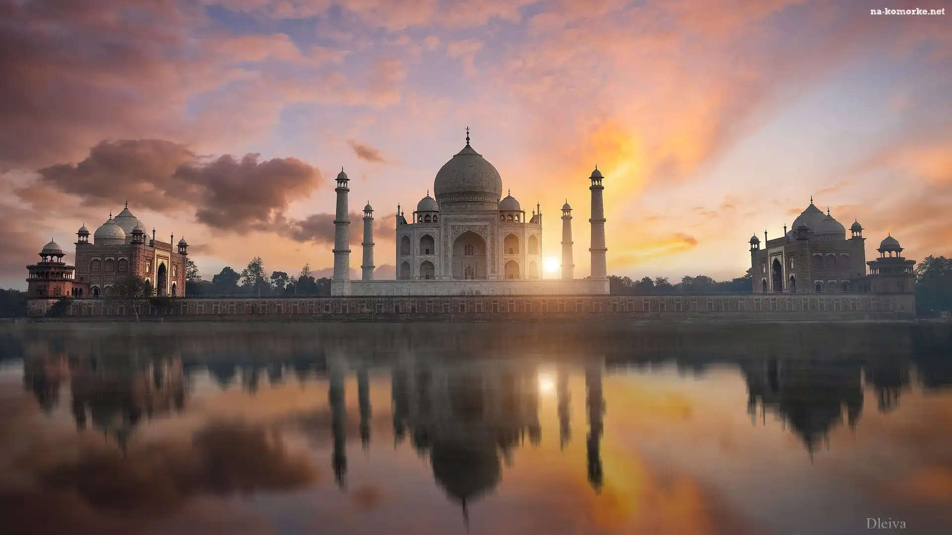 Tadź Mahal, Agra, Rzeka Jamuna, Zabytek, Zachód słońca, Indie, Świątynia Miłości, Mauzeleum na Komórkę |