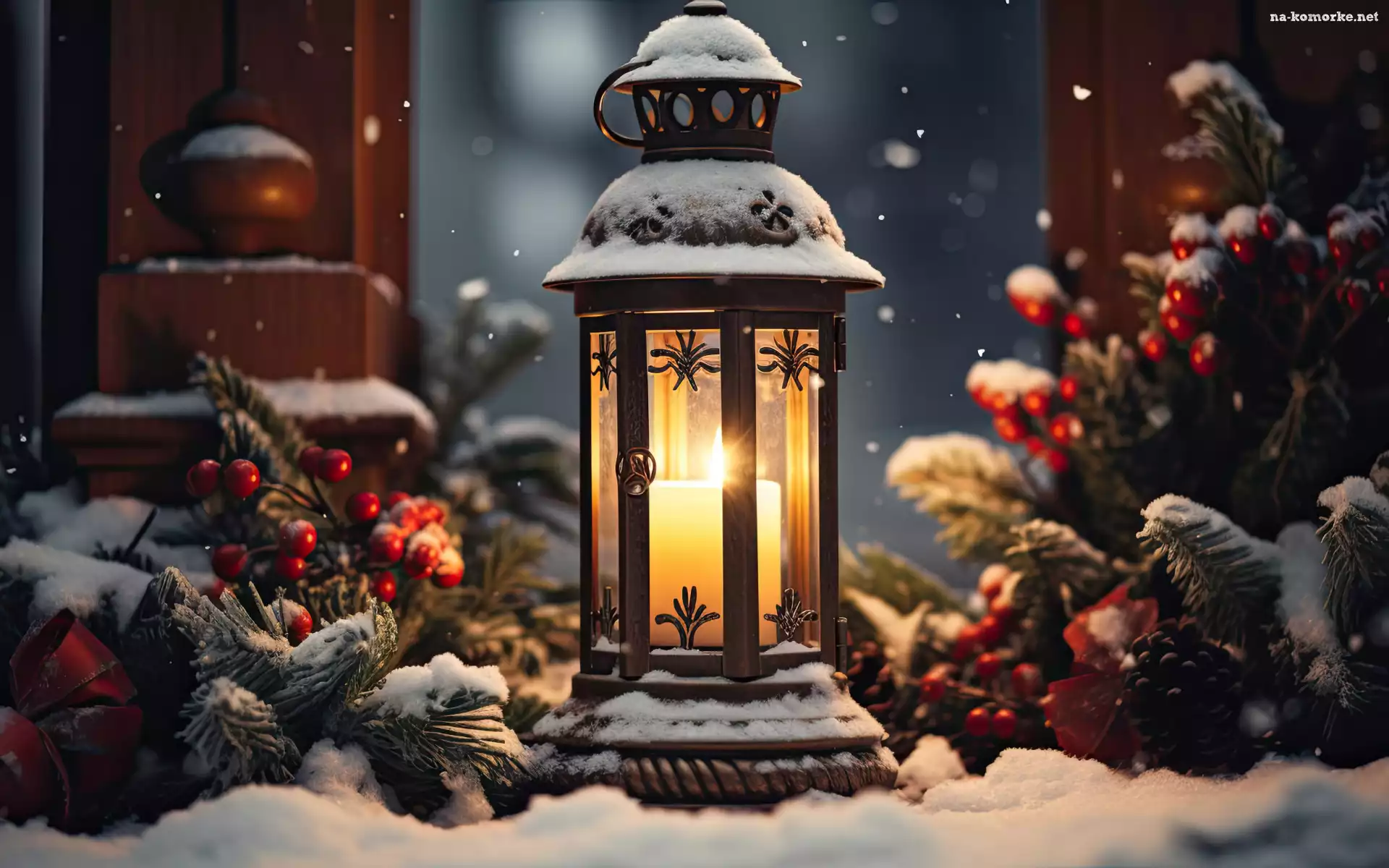 Ozdoby, Zima, Gałązki, Świeca, Śnieg, Lampion na Komórkę