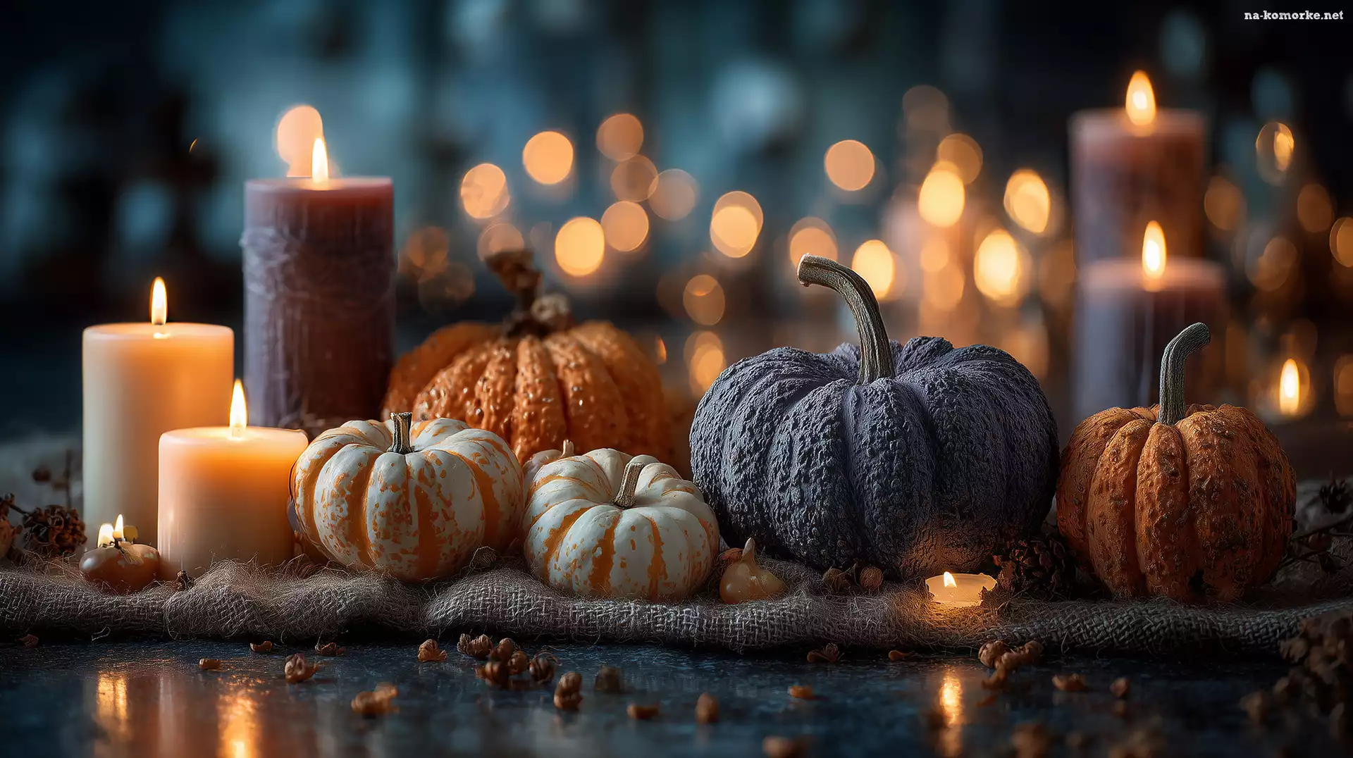 Dynie, Tkanina, Bokeh, Świece, Grafika AI na Komórkę