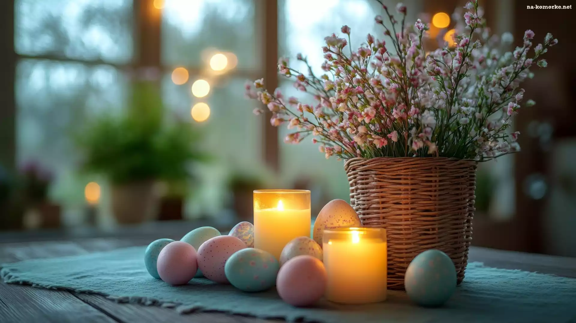 Wielkanoc, Świece, Koszyk, Pisanki, Kwiaty na Komórkę