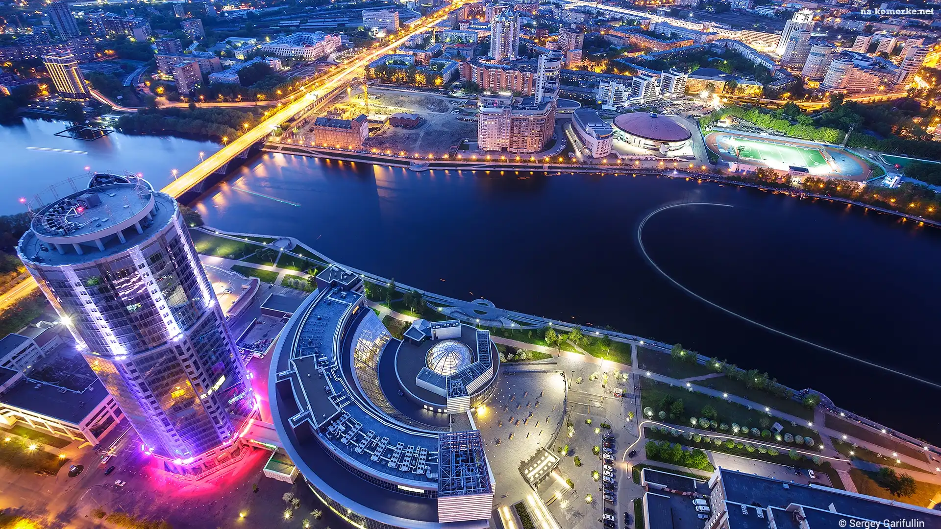 Jekaterynburg, Obwód swierdłowski, Rosja, Miasto, Z lotu ptaka, Rzeka Iset, Wieczór na Komórkę