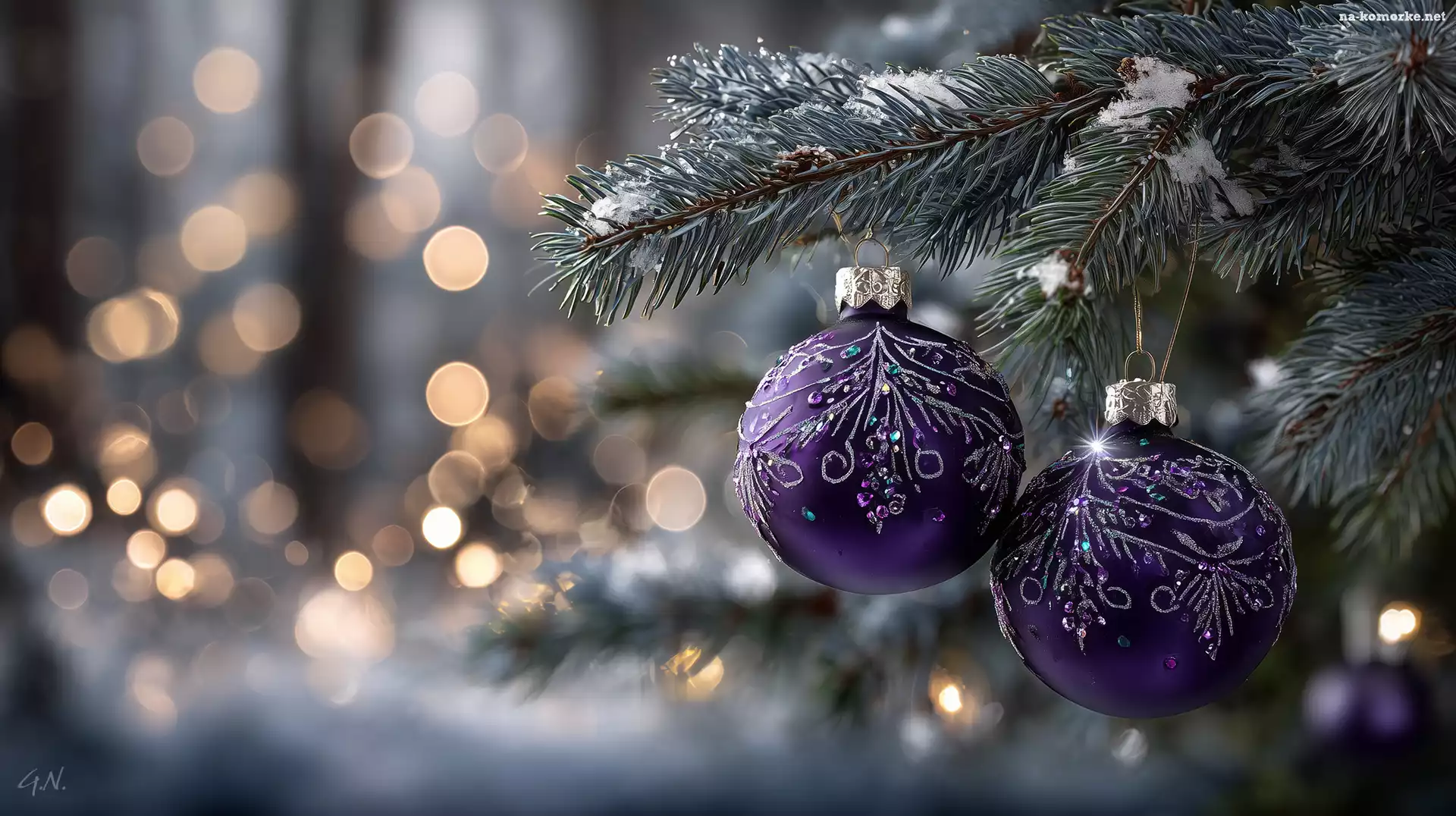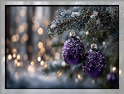 Boże Narodzenie, Bombki, Świerk, Fioletowe, Grafika AI na Komórkę