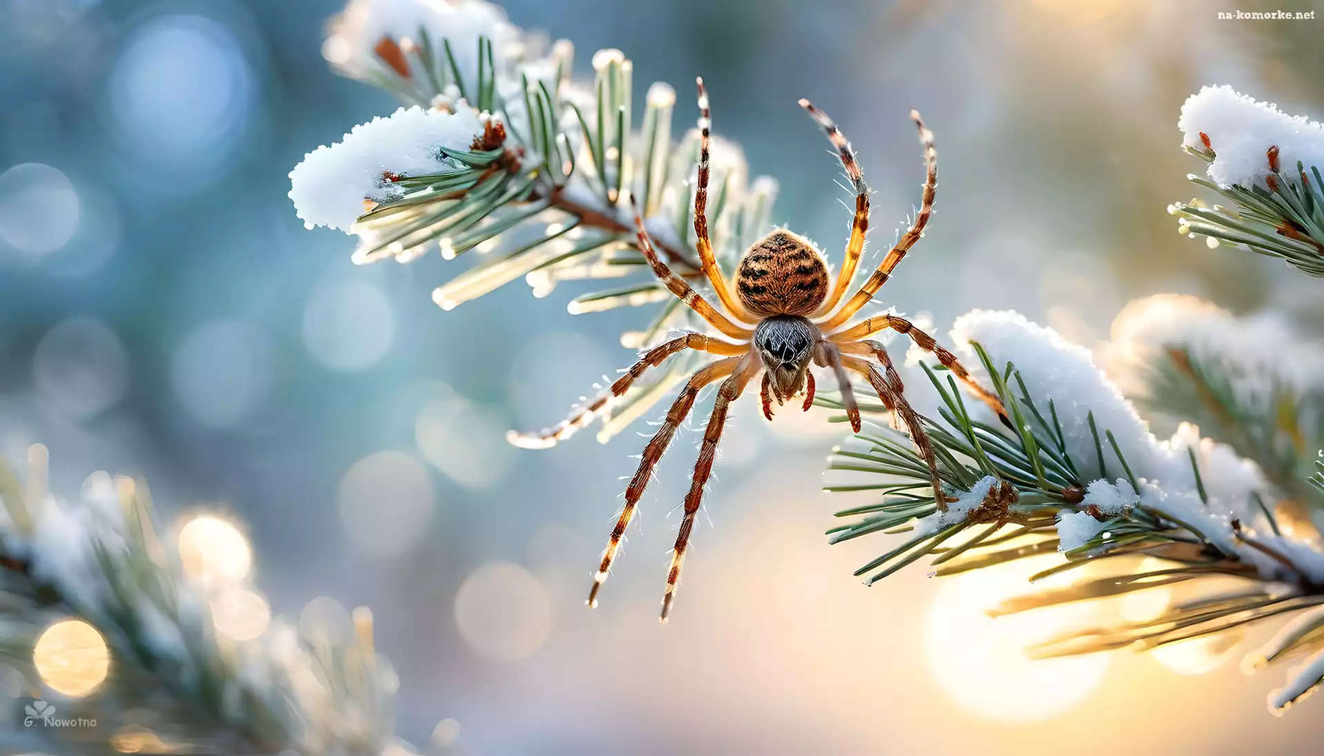 Pająk, Świerkowa, Śnieg, Gałązka, Grafika na Komórkę