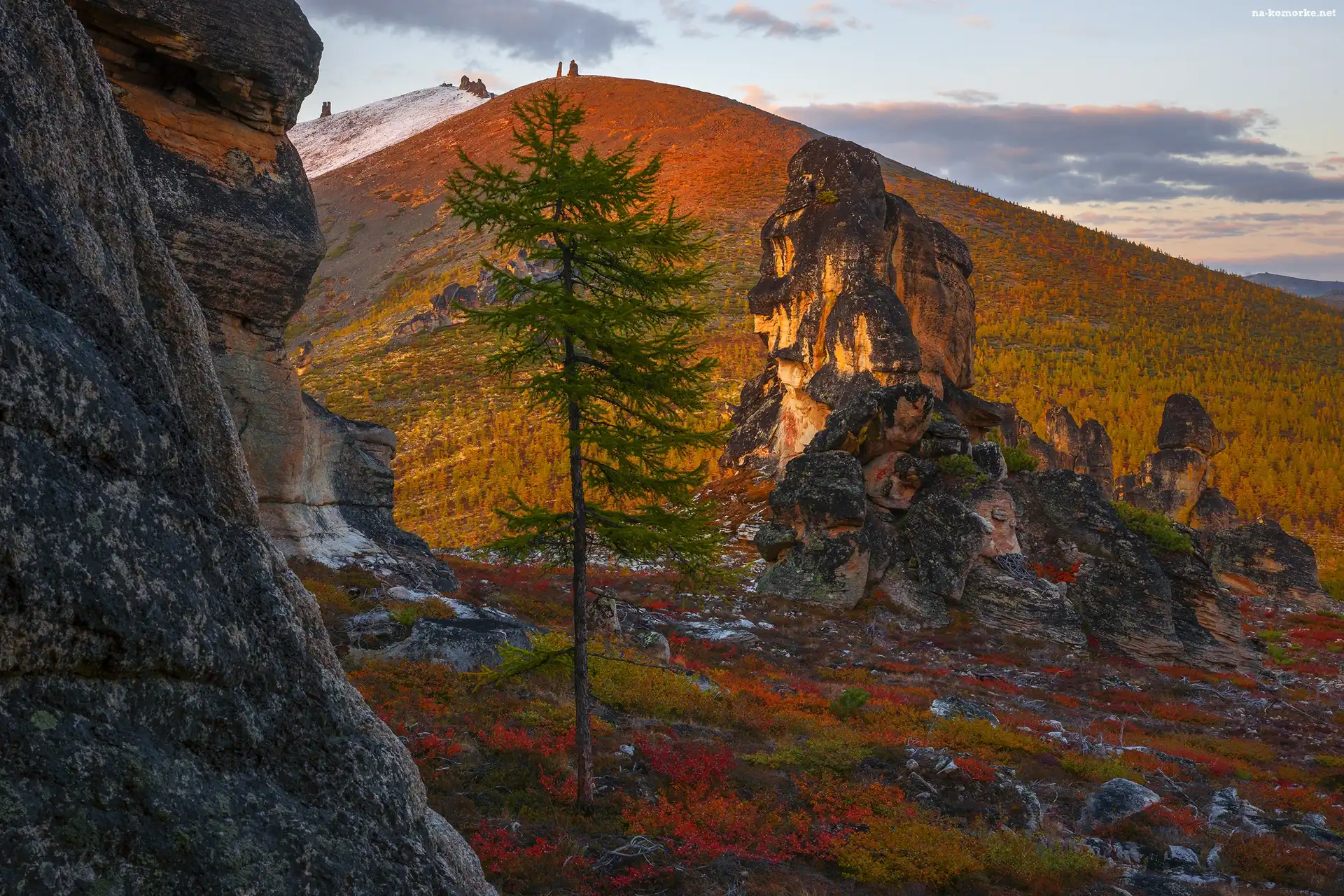 Góry, Syberia, Rosja, Skały, Świerk, Ojmiakon, Jakucja na Komórkę