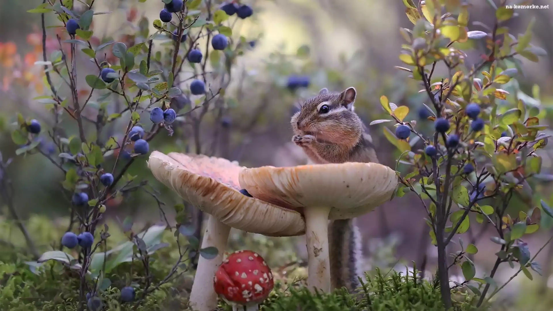 Burunduk syberyjski, Jagody Wiewiórka, Grzyby na Komórkę