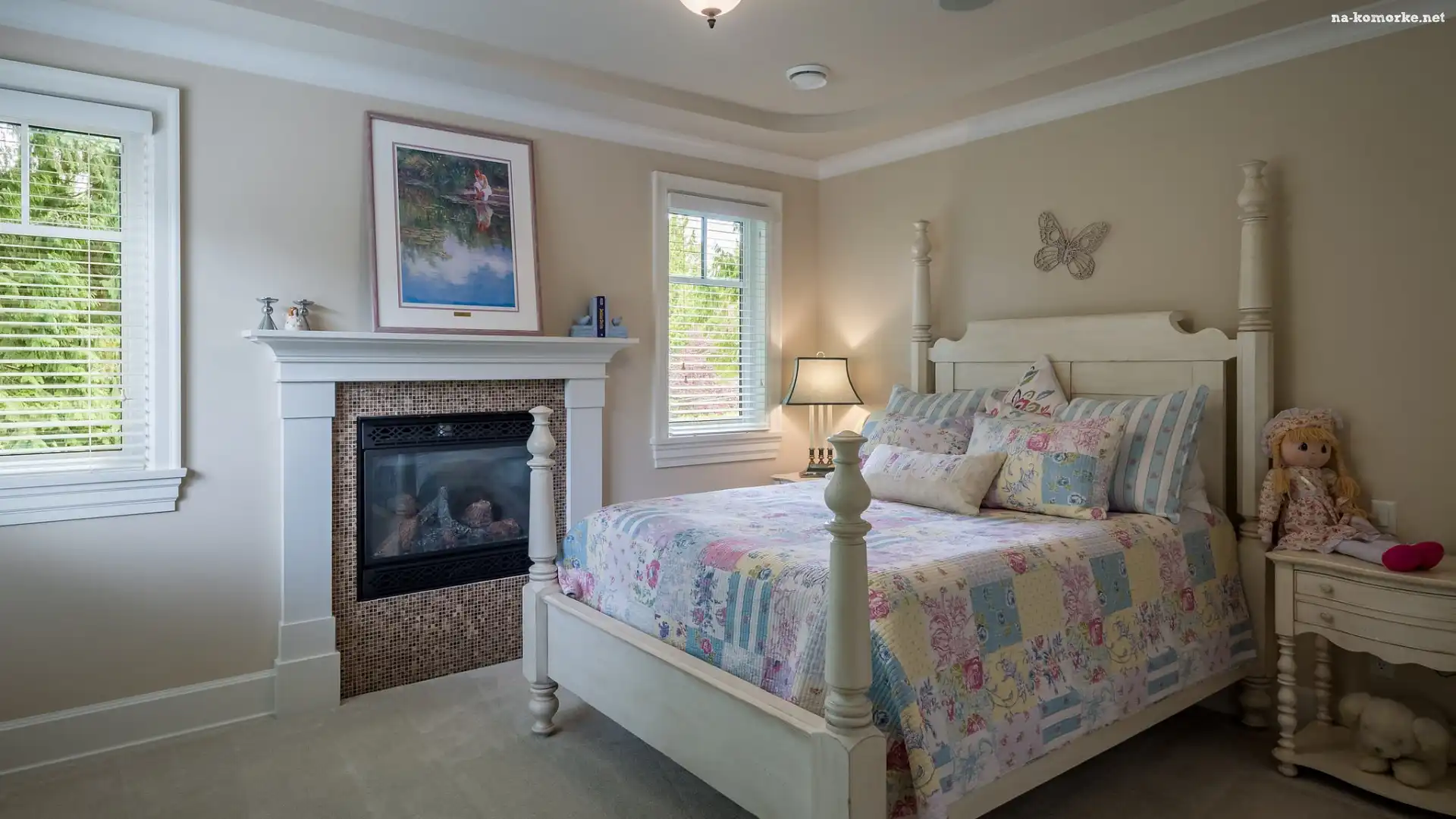 Sypialnia, Lampka, Łóżko, Kominek na Komórkę