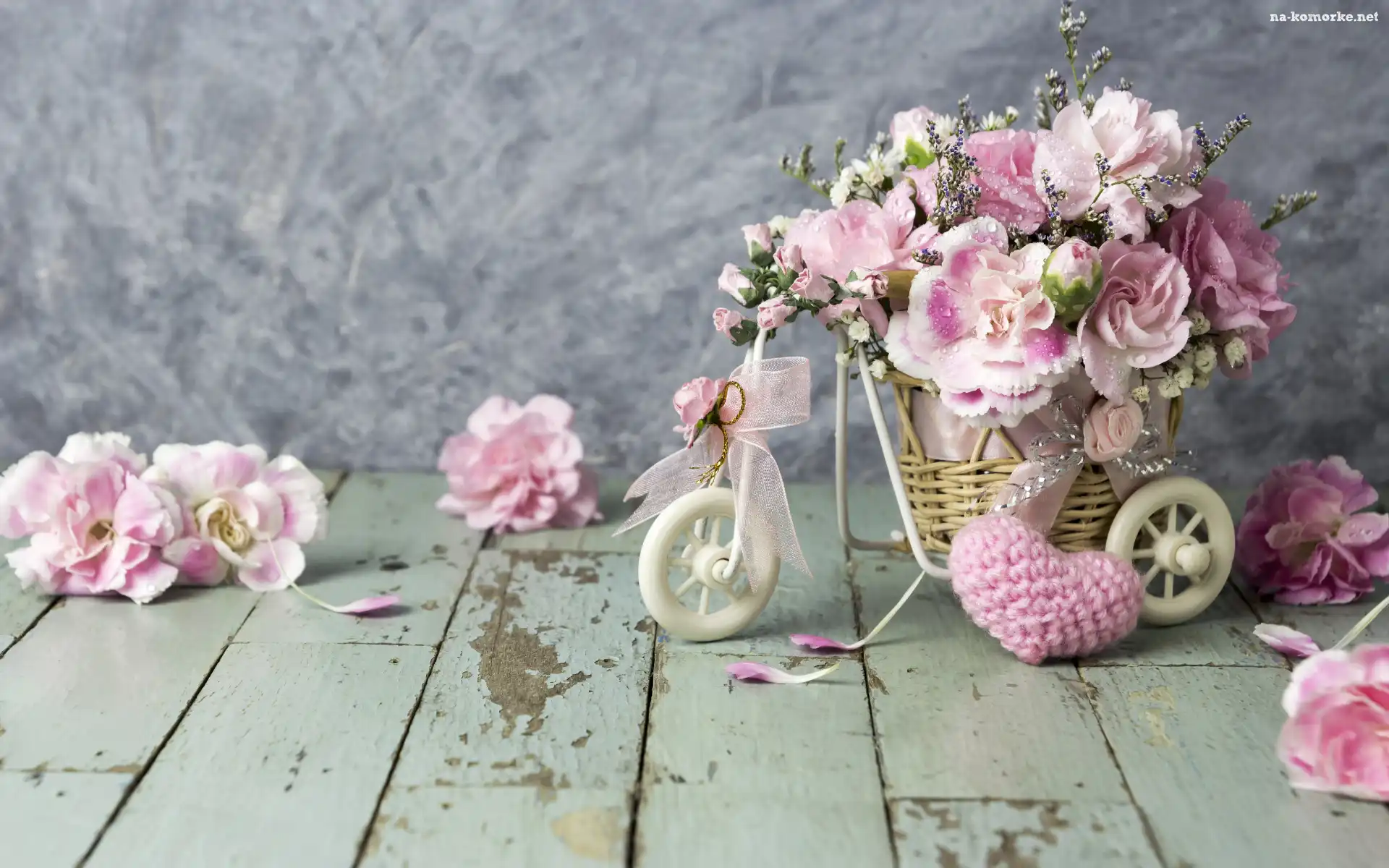 Goździki szabo, Różowe, Kompozycja, Serce, Kwiaty, Rowerek na Komórkę