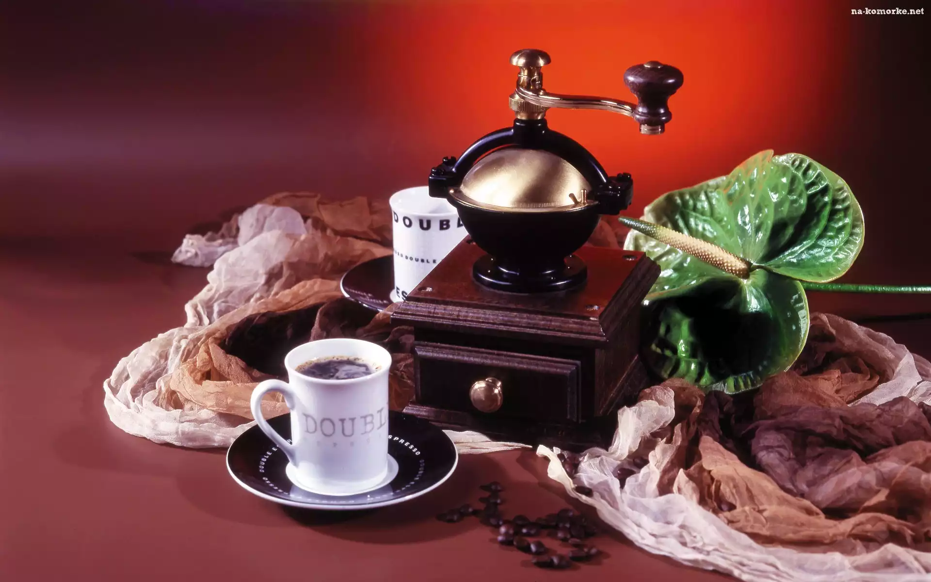 Szal, Młynek, Kawa, Filiżanki, Kwiat na Komórkę