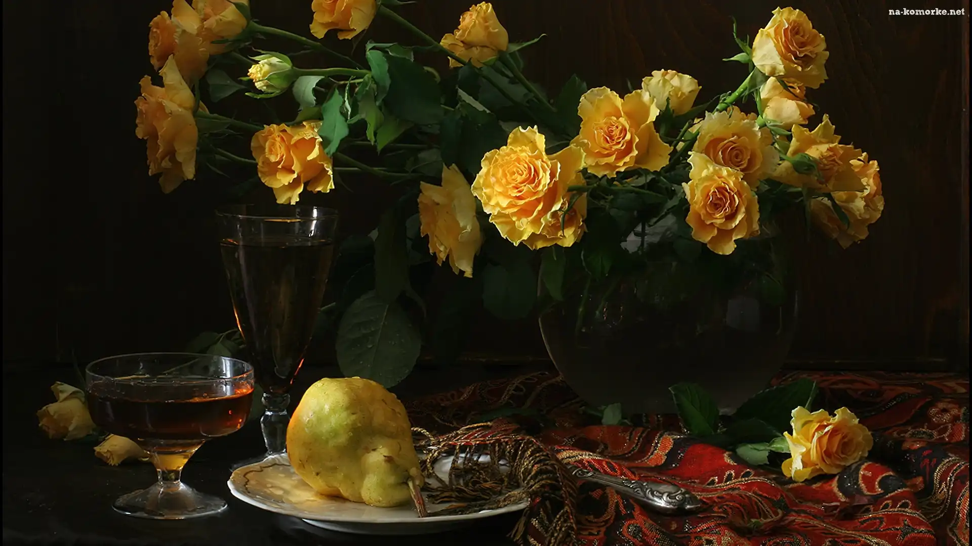 Szal, Żółte, Róże, Kieliszki, Gruszka na Komórkę