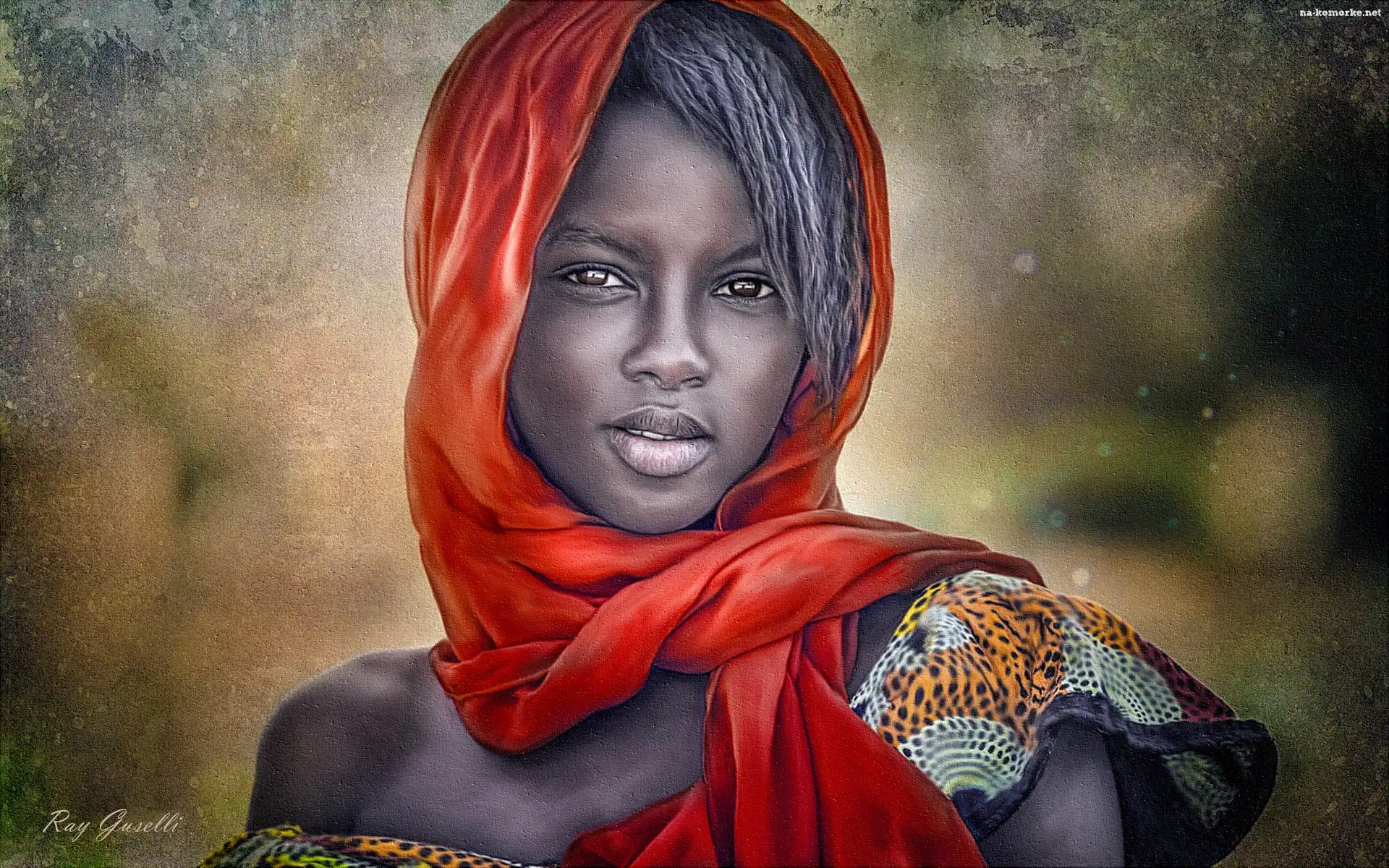 Szal, Dziewczyna, Murzynka, Twarz, Czerwony na Komórkę