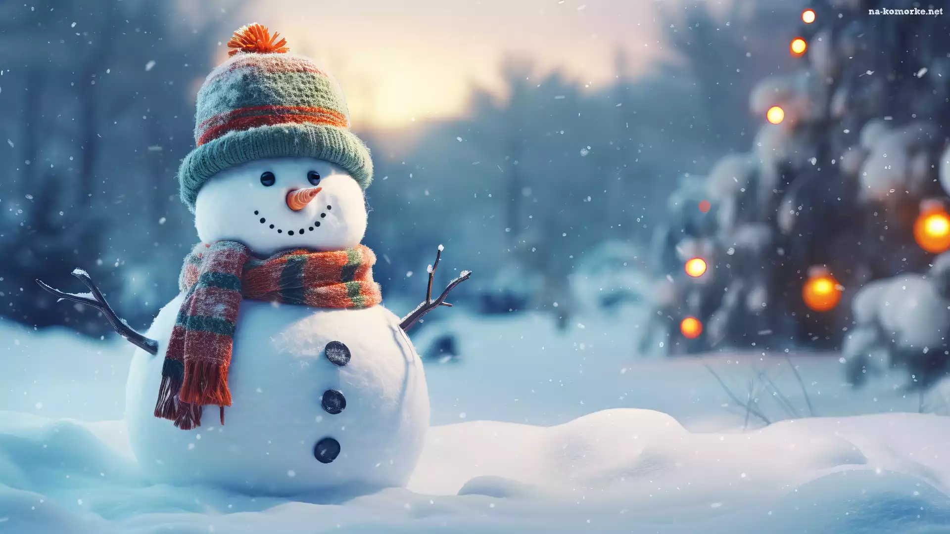 Czapka, Zima, Kolorowa, Szalik, Bałwan, Śnieg na Komórkę