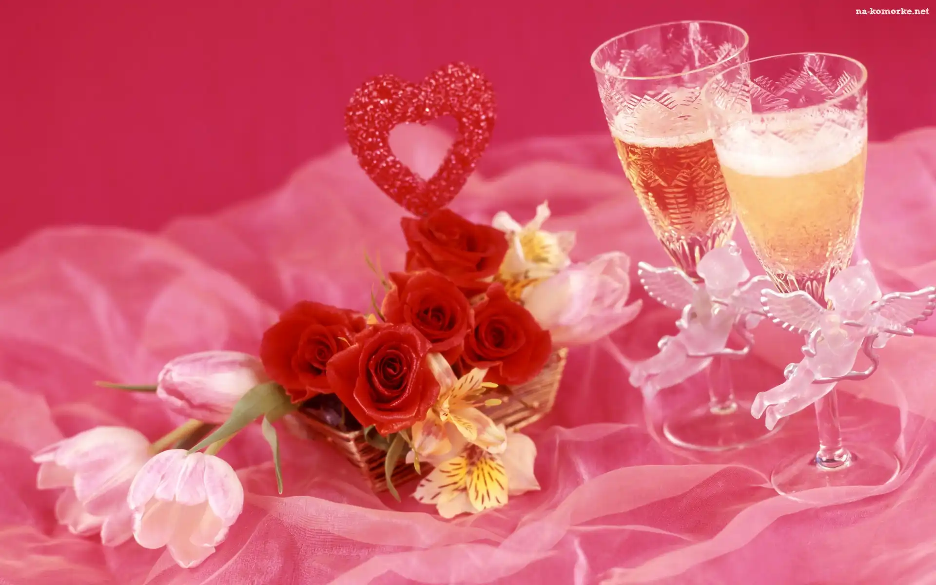 Szampan, Serce, Kielszki, Kwiaty na Komórkę