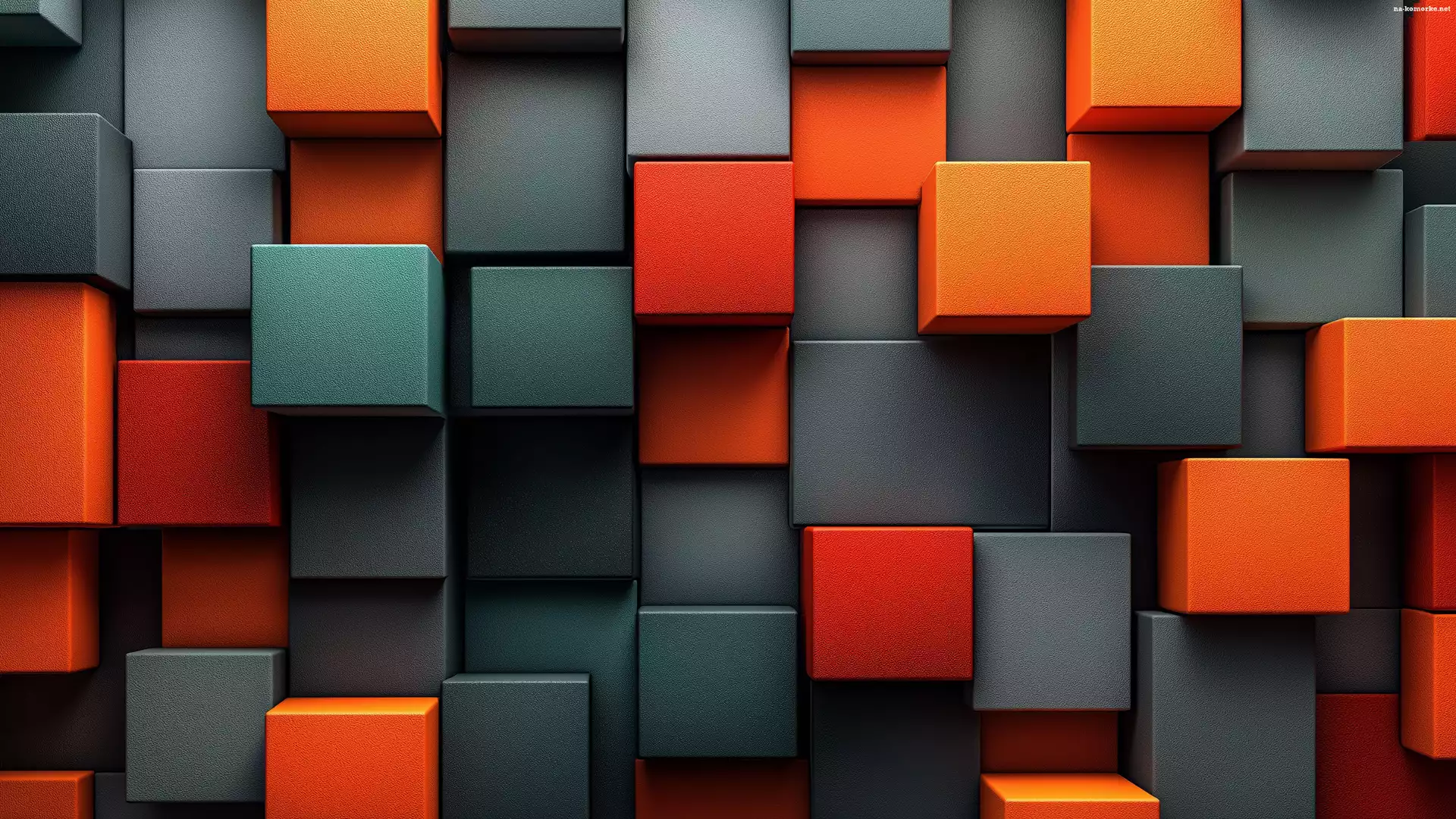 Kostki, Szare, Pomarańczowe, Sześciany, Grafika na Komórkę