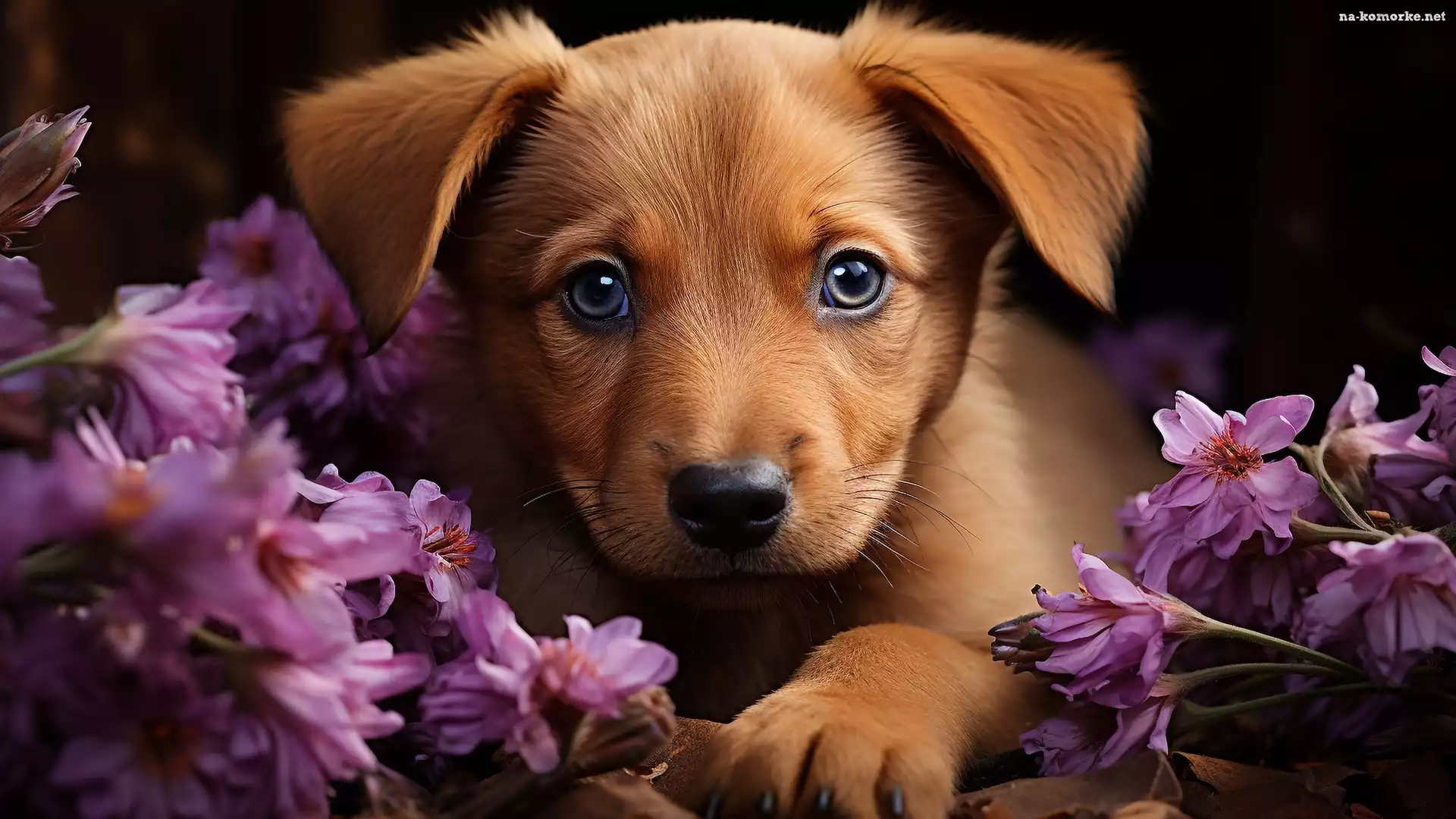 Brązowy, Kwiaty, Pies, Szczeniak na Komórkę