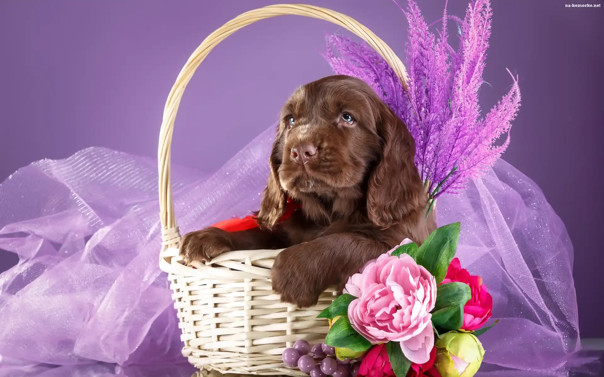 Szczeniak, Kwiatki, Spaniel, Koszyk na Komórkę