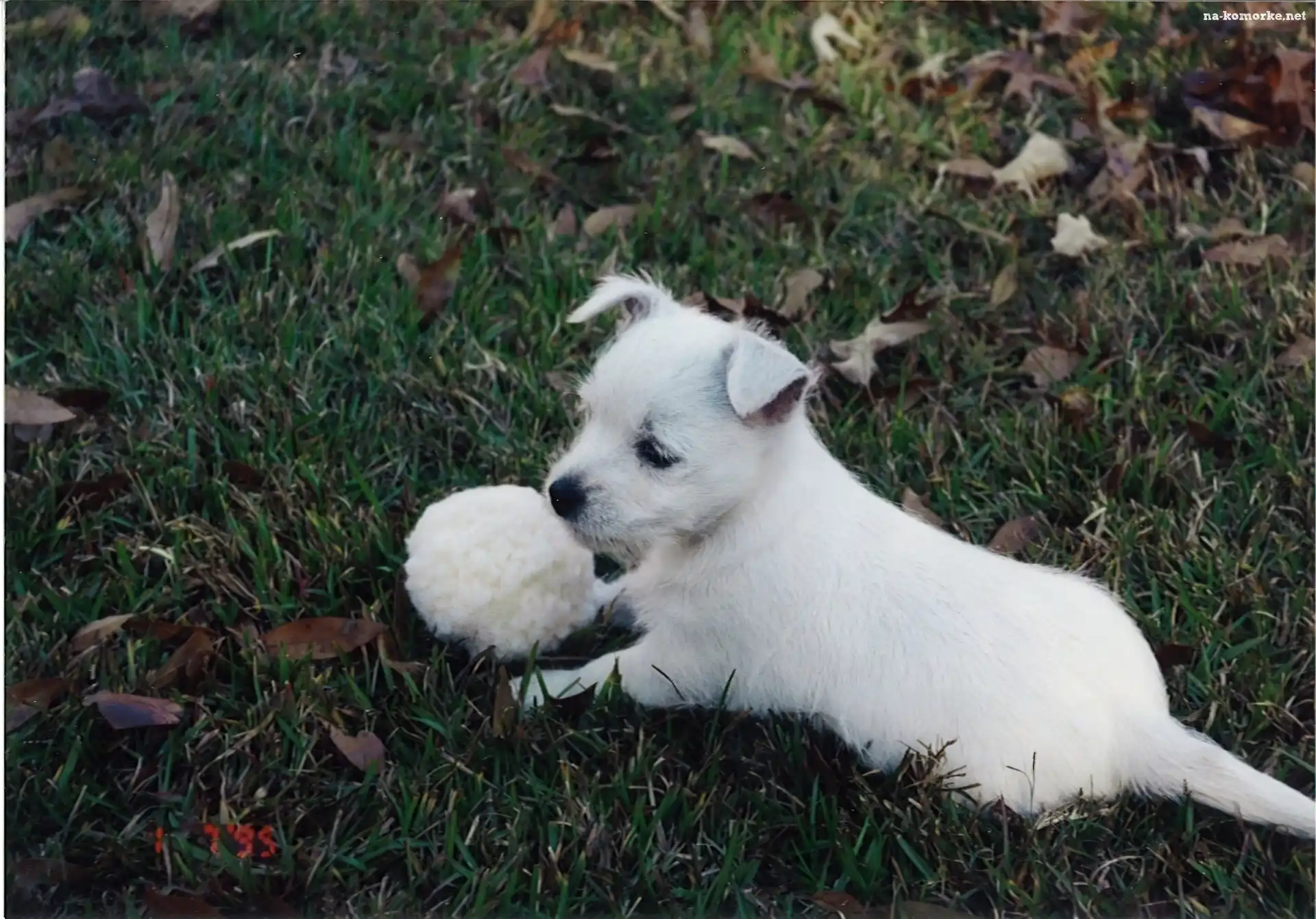 szczeniak, West Highland White Terrier, piłka na Komórkę