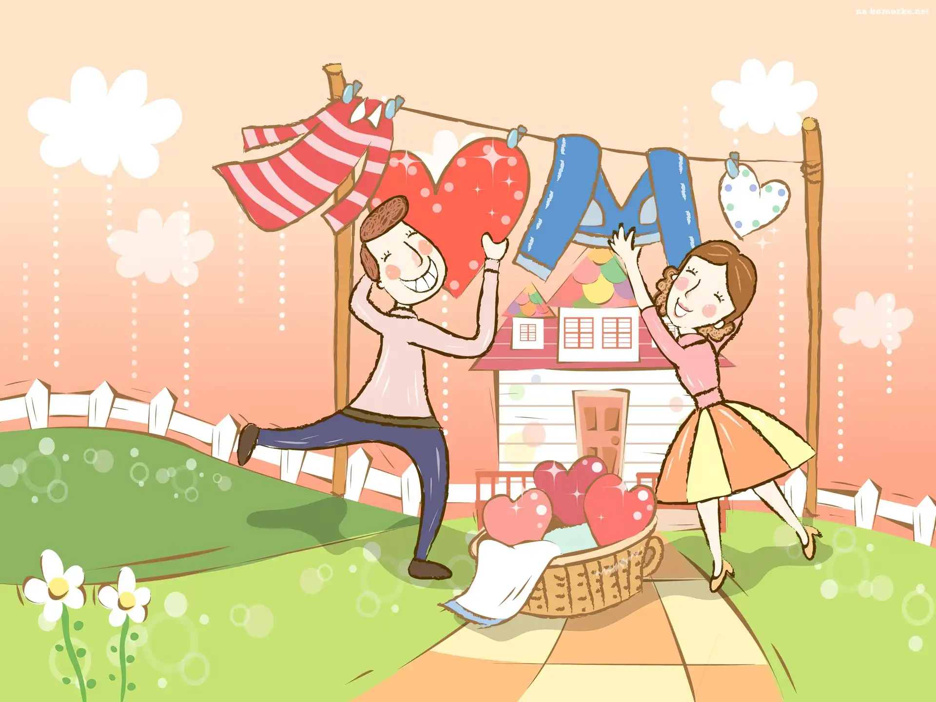 Szczęśliwa, Serca, Para, Pranie na Komórkę