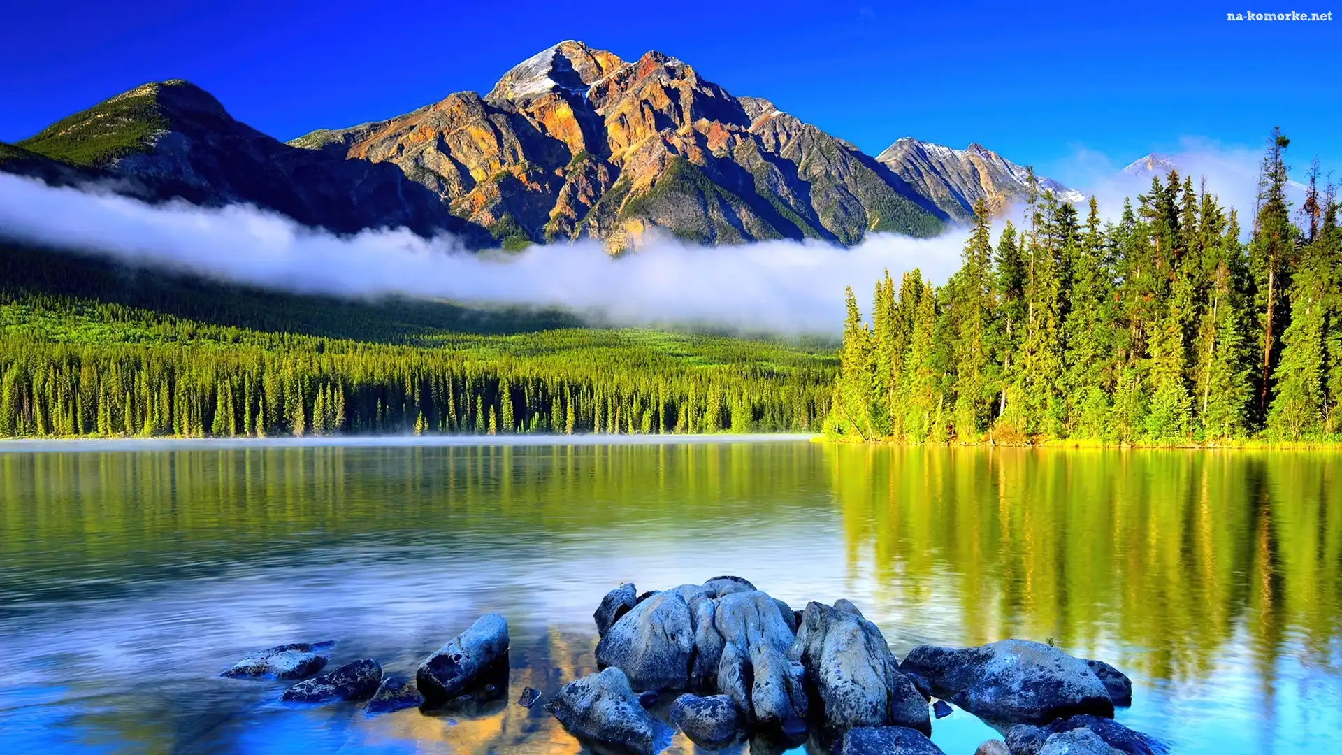 Szczyty, Choinki, Jezioro, Kamienie na Komórkę