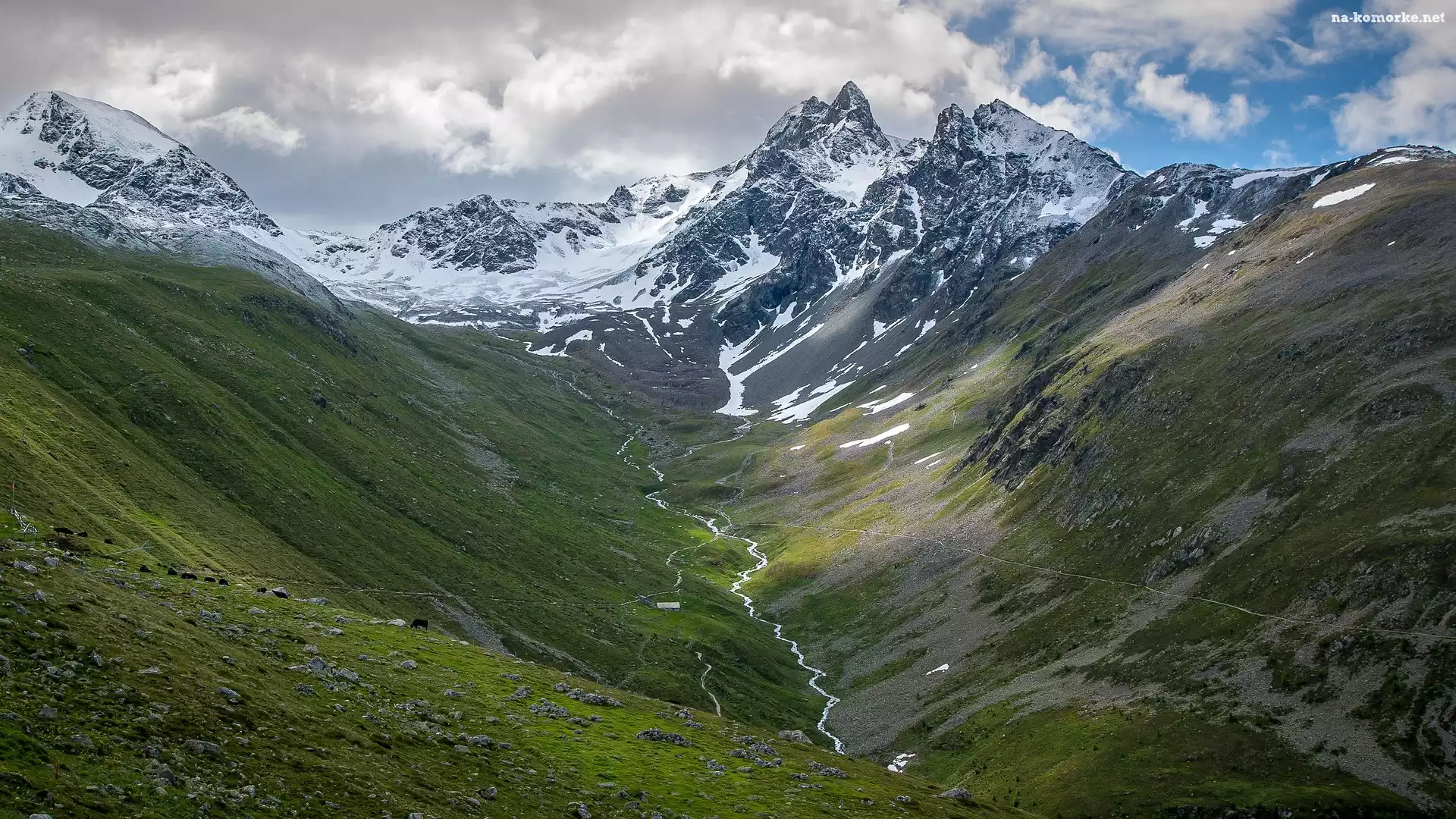 Szczyty, Góry, Dolina, Rzeka, Ośnieżone na Komórkę