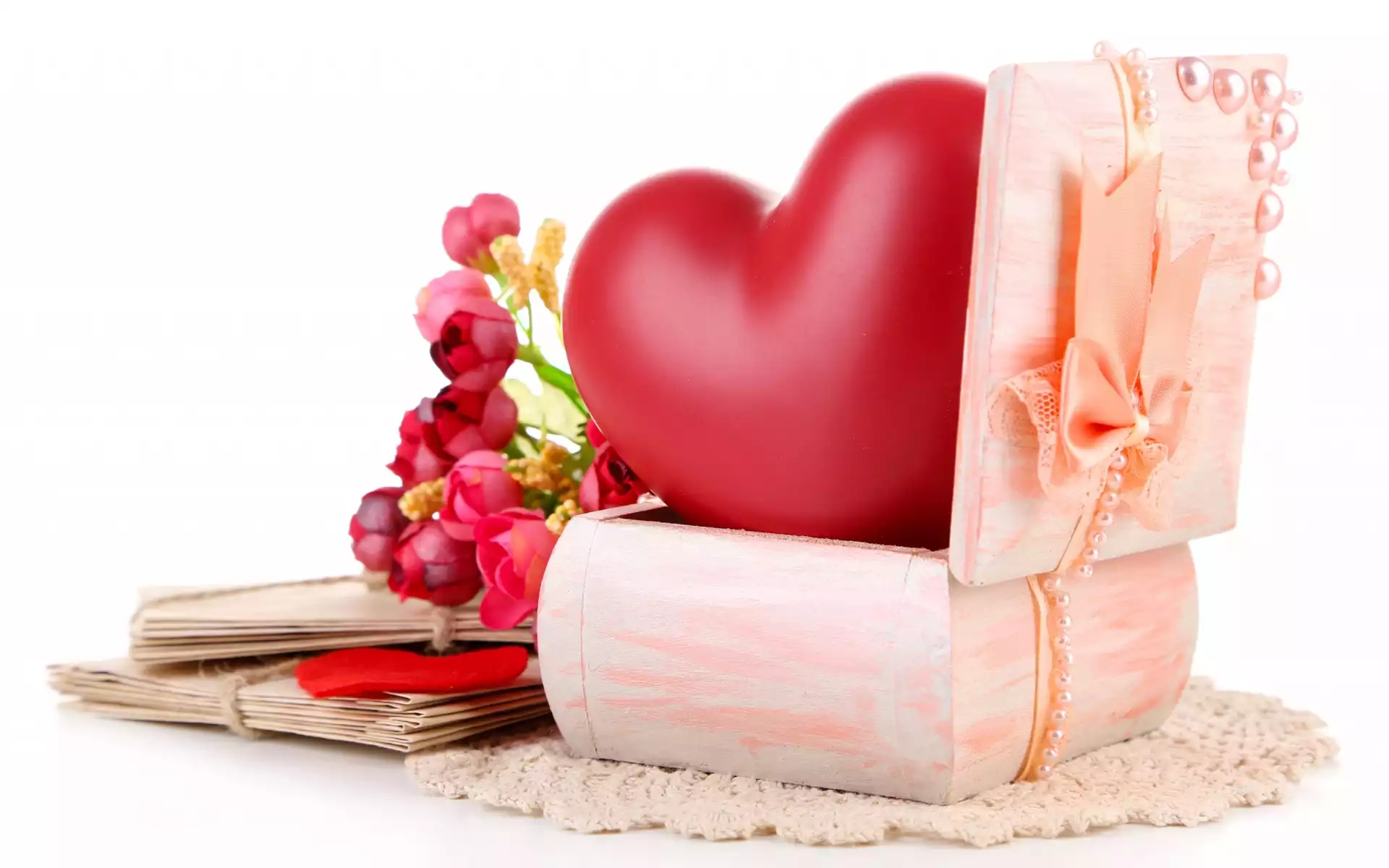 Szkatułka, Bukiecik, Serce, Walentynki, Kwiatów, Kompozycja na Komórkę