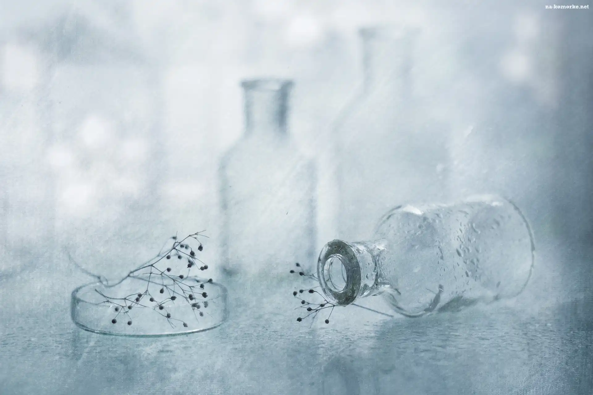 Szklane, Martwa natura, Dwie, Butelki na Komórkę