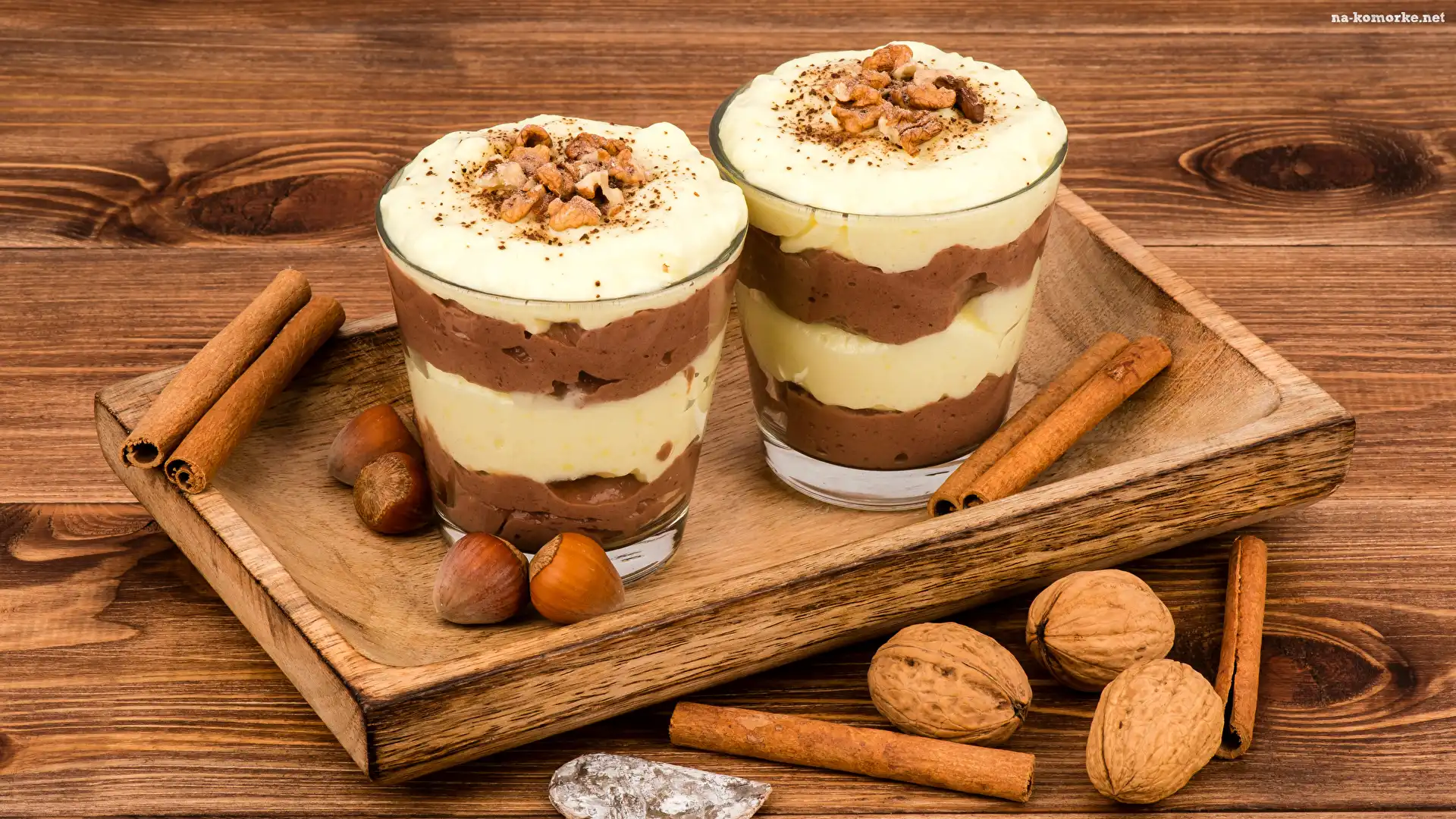 Desery, Taca, Orzechy włoskie, Deski, Waniliowe, Laskowe, Laski cynamonu, Szklanki na Komórkę