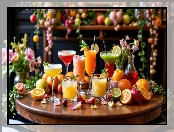 Drinki, Szklanki, Owoce, Kieliszki, Stół na Komórkę