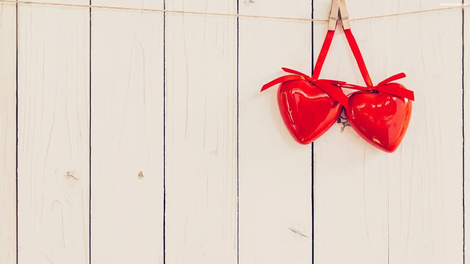 Walentynki, Sznurek, Dwa, Klamerki, Miłość, Serca, Czerwone, Wstążeczki na Komórkę