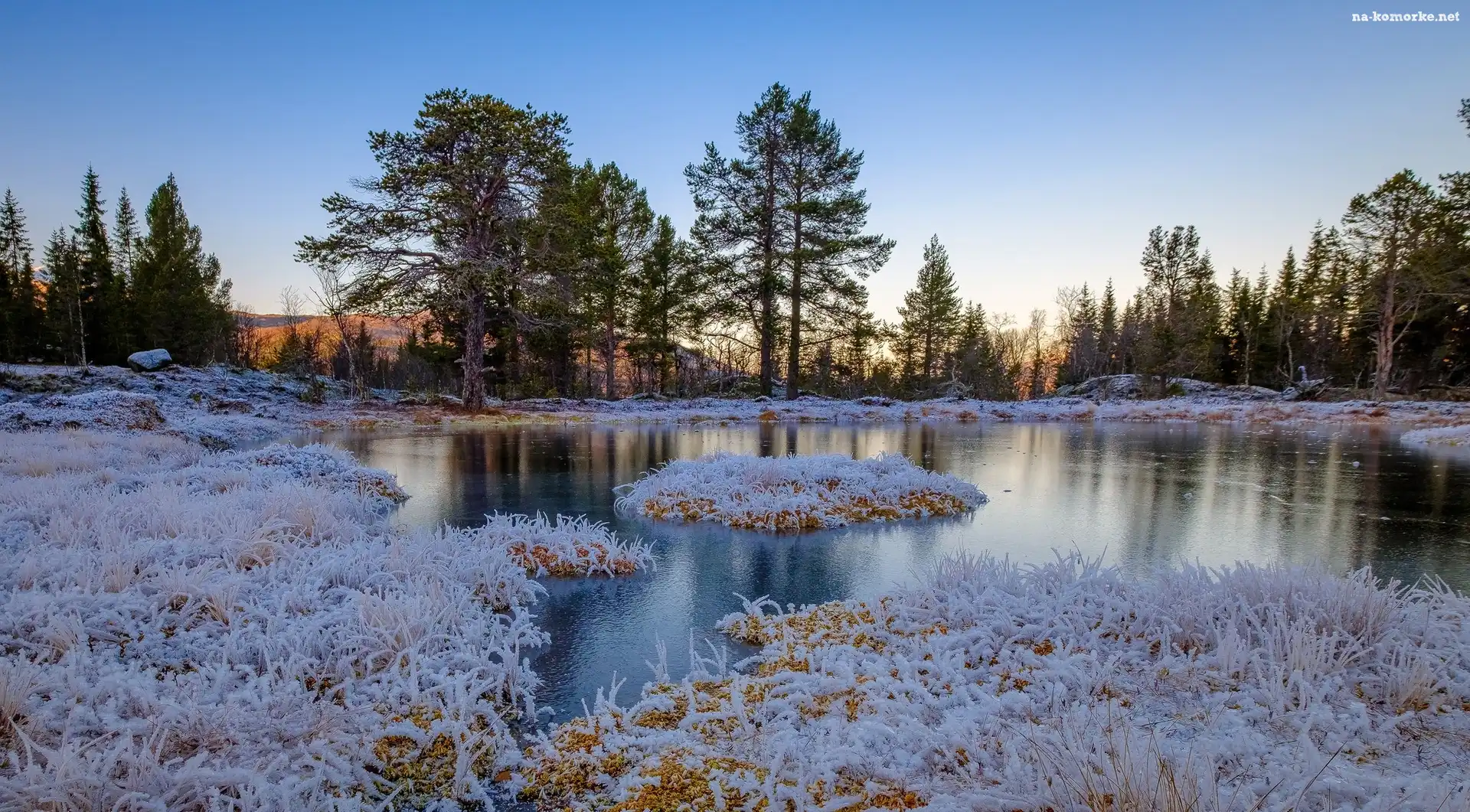 Szron, Zima, Staw, Rośliny, Drzewa na Komórkę