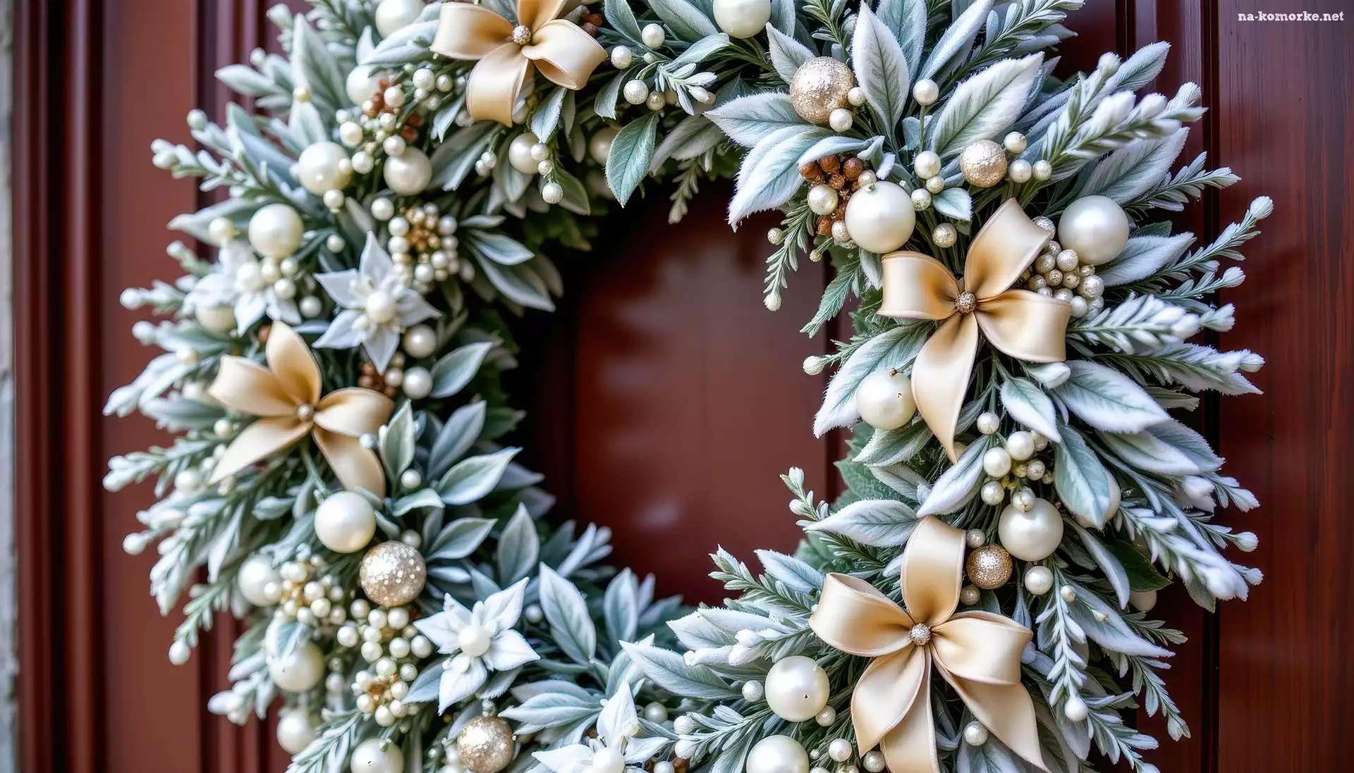Boże Narodzenie, Wieniec, Bombki, Grafika AI, Kokardki, Szron na Komórkę