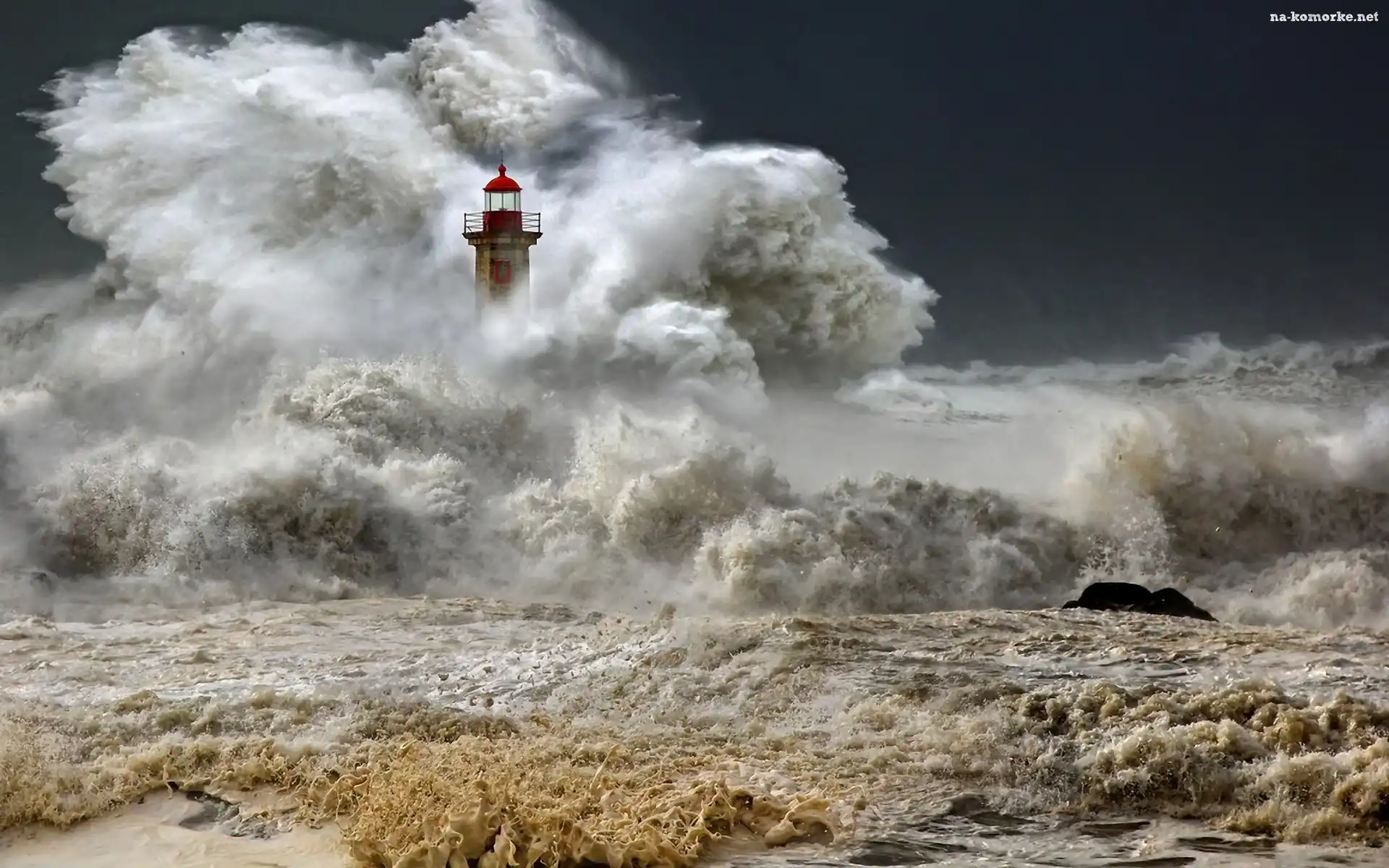 Sztorm, Latarnia, Morska, Morze, Fale na Komórkę