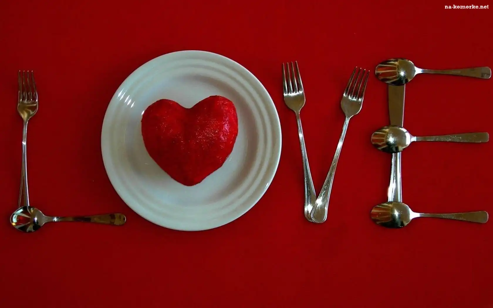 Sztućce, Napis, Talerz, Serce na Komórkę