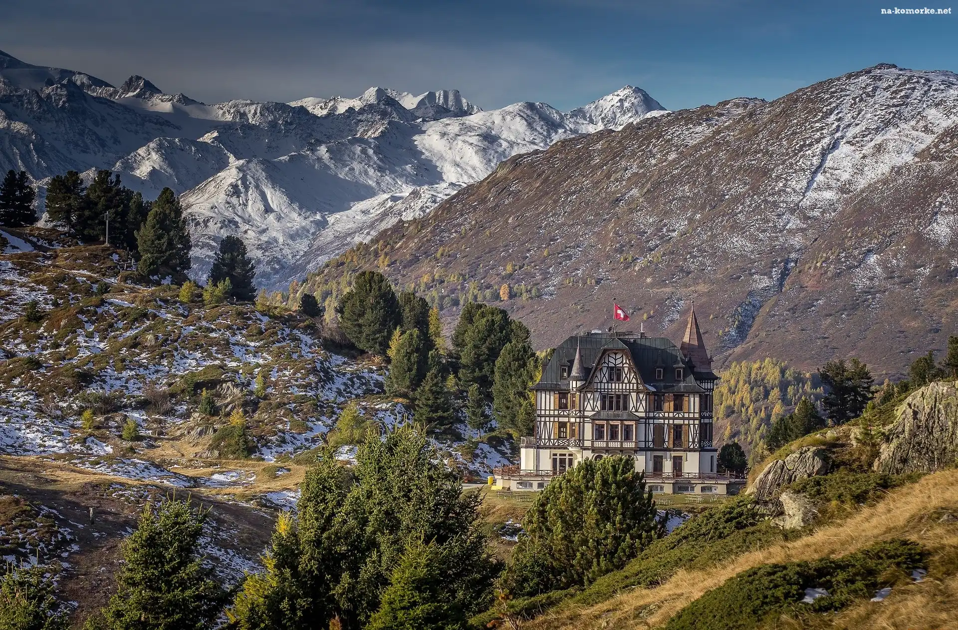 Szwajcaria, Dom, Góry, Drzewa na Komórkę