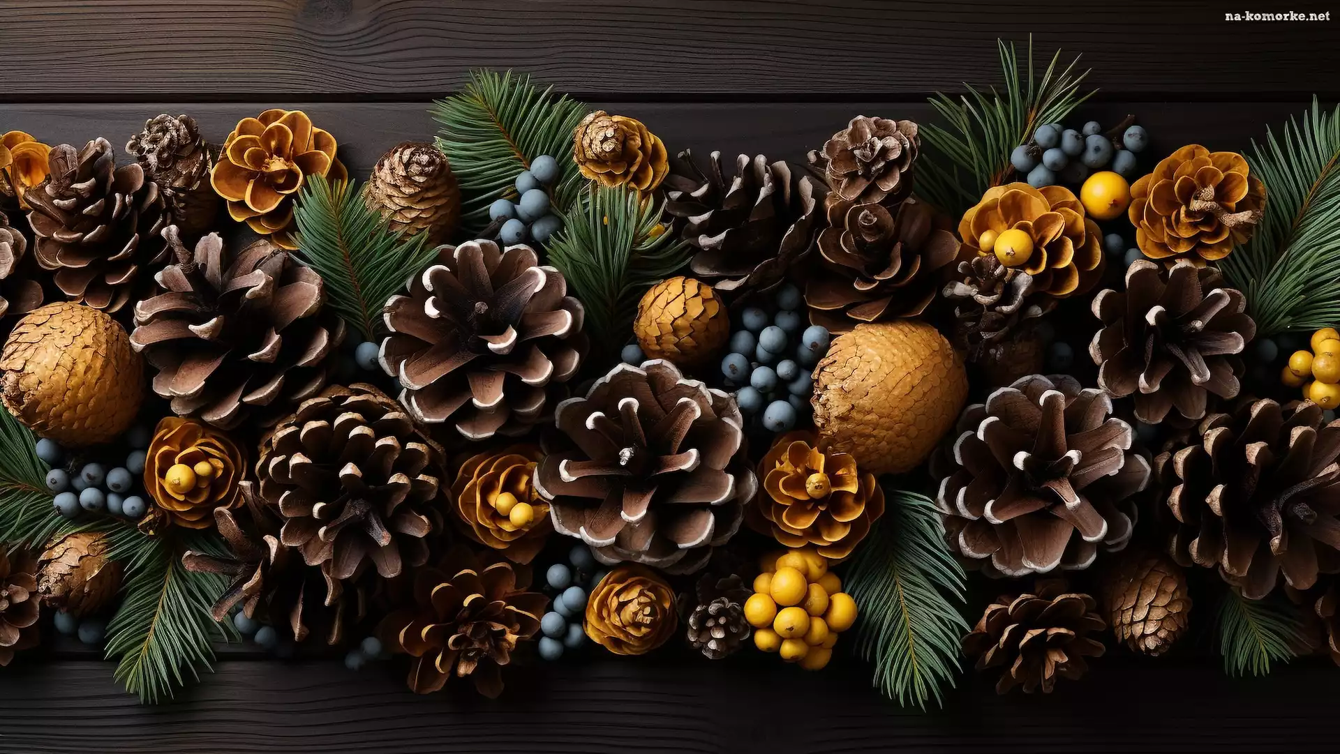 Kompozycja, Szyszki, Liście, Grafika, Jagody na Komórkę