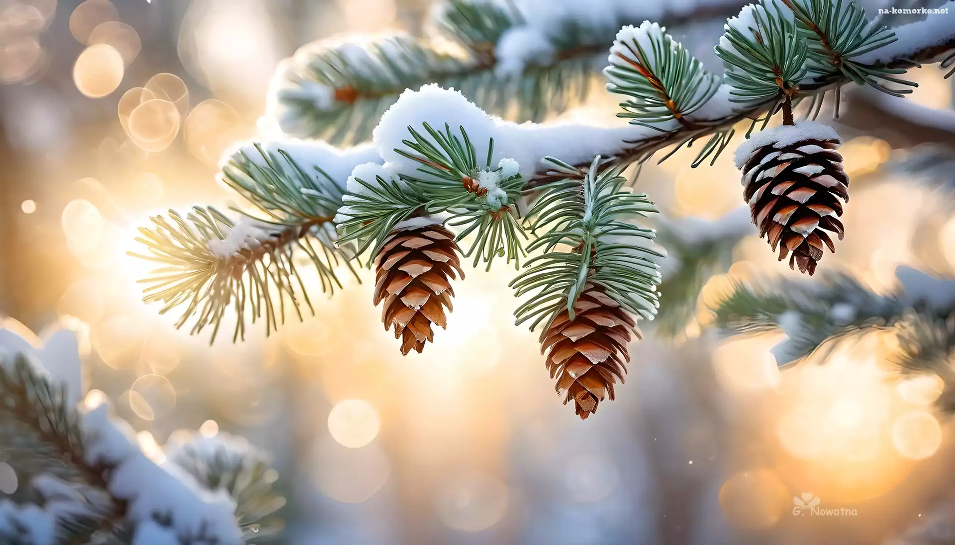 Gałązka, Szyszki, Śnieg, Świerk, Grafika na Komórkę