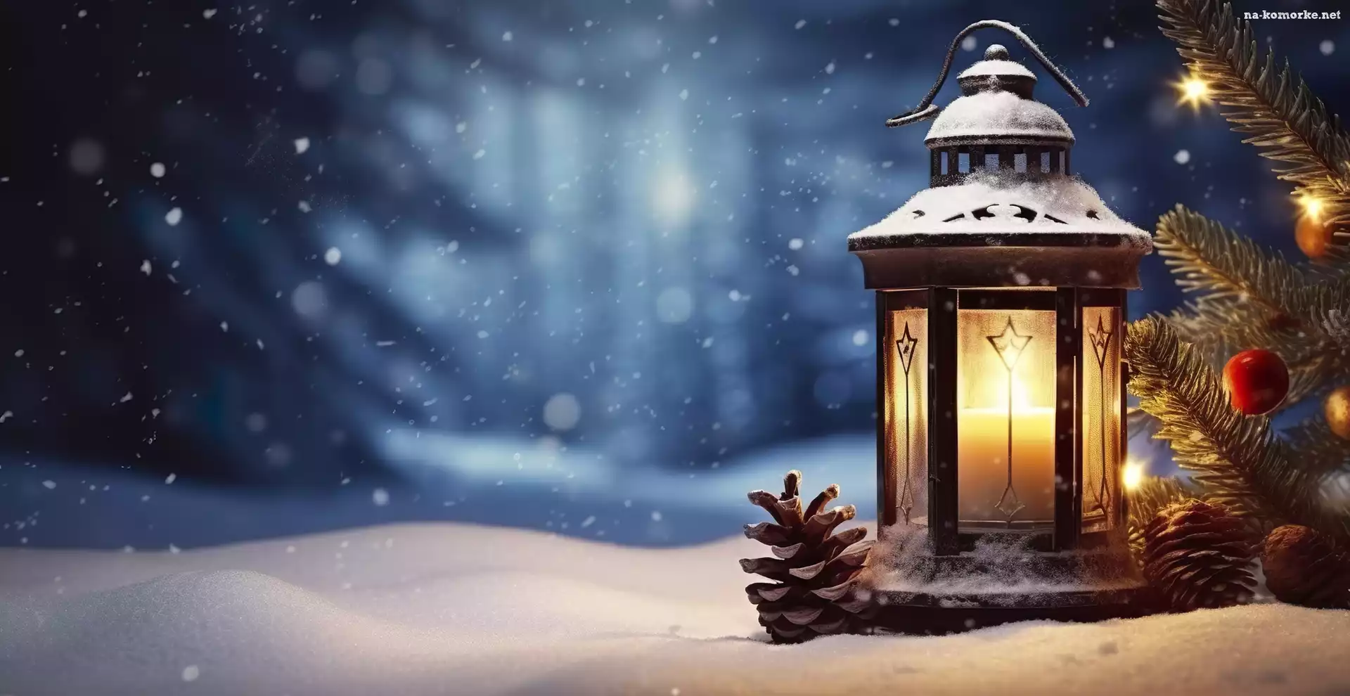 Zima, Grafika, Lampion, Szyszki na Komórkę