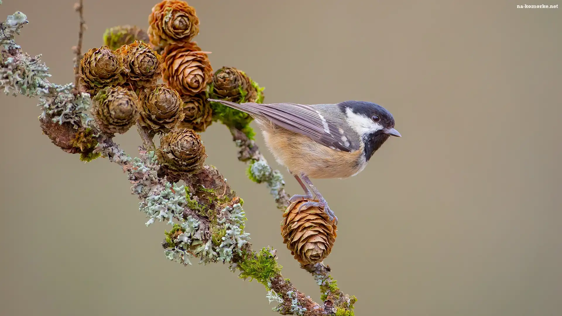 Szyszki, Ptak, Sikorka, Sikora uboga, Gałązka na Komórkę