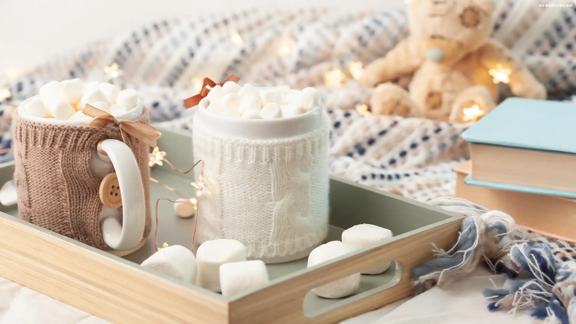 Kubki, Książki, Świąteczne, Osłonki, Dzianina, Pianki, Taca na Komórkę