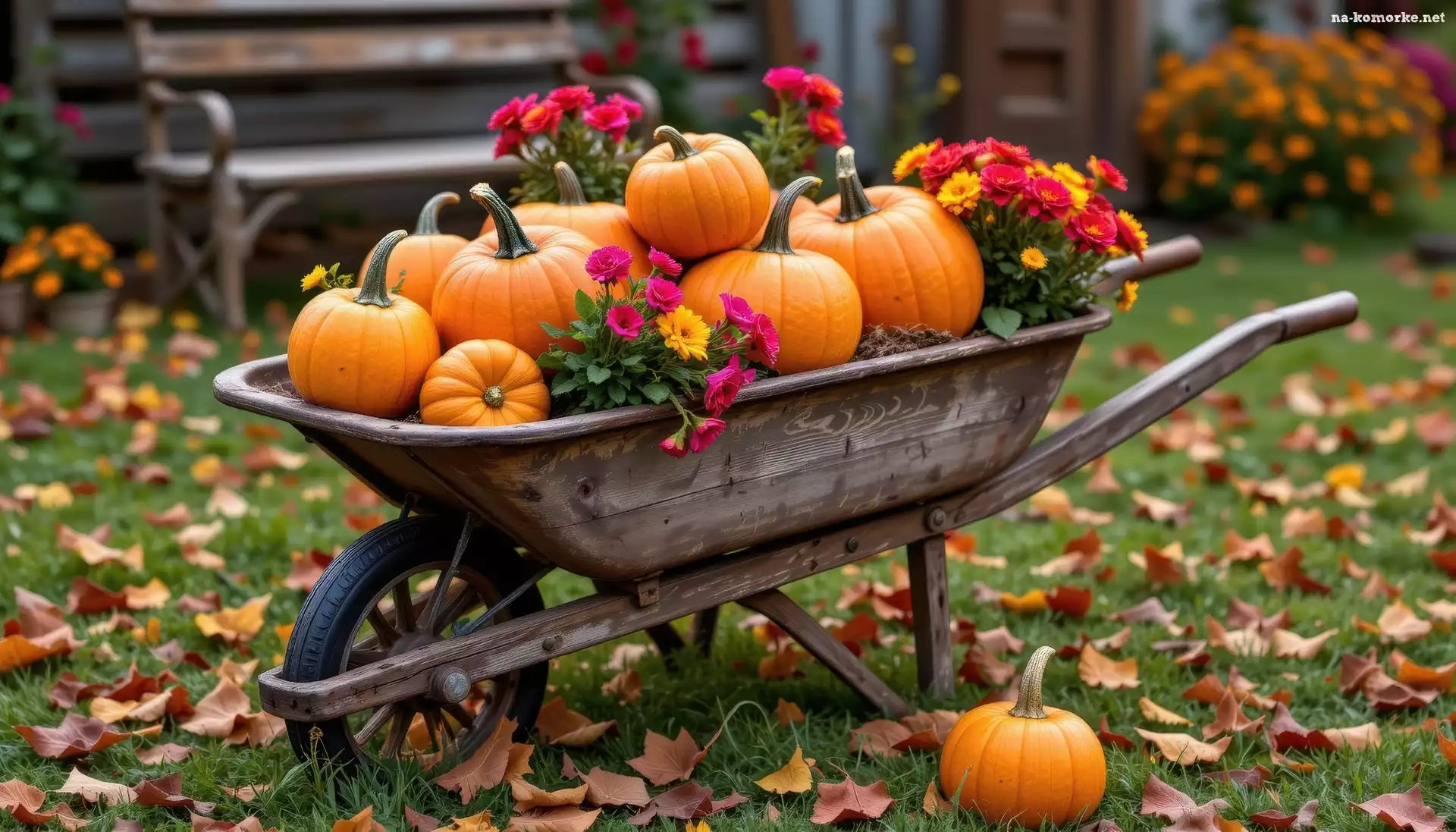 Dynie, Kwiaty, Drewniana, Taczka na Komórkę