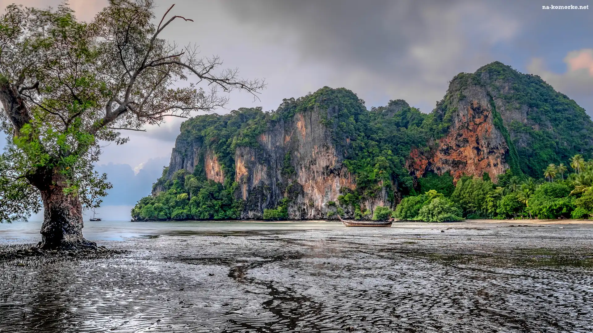 Góry, Krabi, Tajlandia, Zatoka East Railay Bay, Drzewo, Łódki, Ao Nang na Komórkę