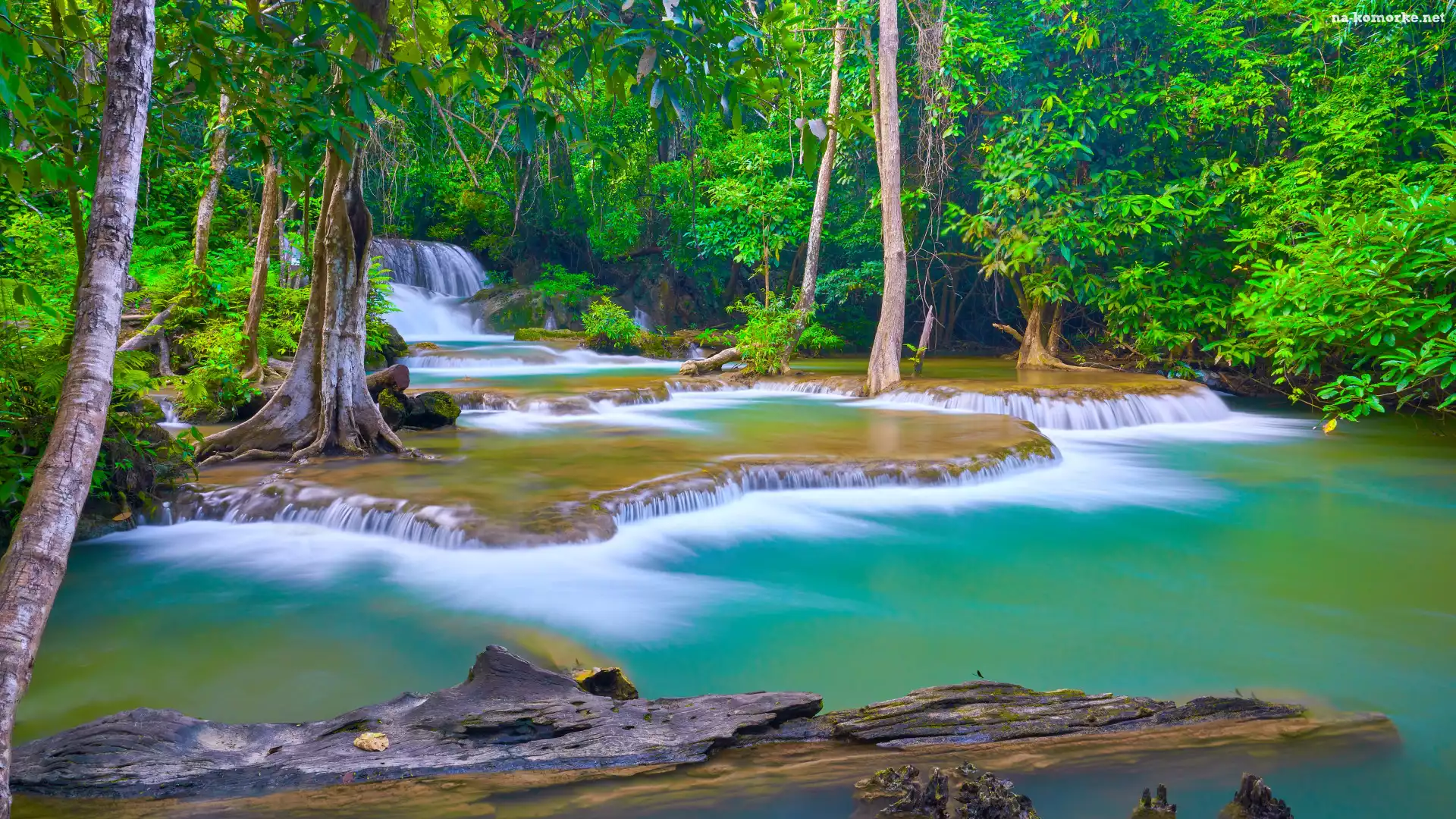 Drzewa, Huai Mae Khamin Waterfall, Kanchanaburi, Wodospad, Tajlandia na Komórkę