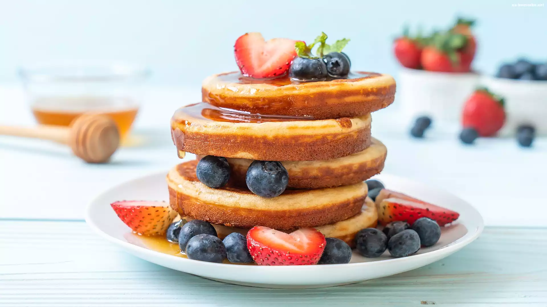 Talerz, Naleśniki, Miód, Jagody, Truskawki na Komórkę