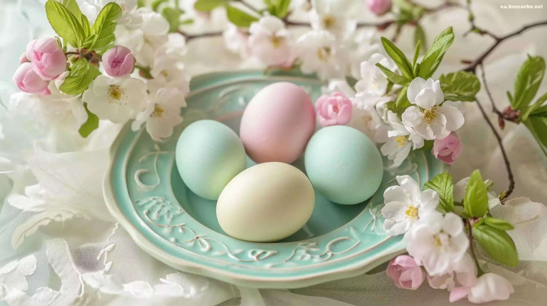 Wielkanoc, Talerz, Kwiaty, Pisanki, Gałązka na Komórkę