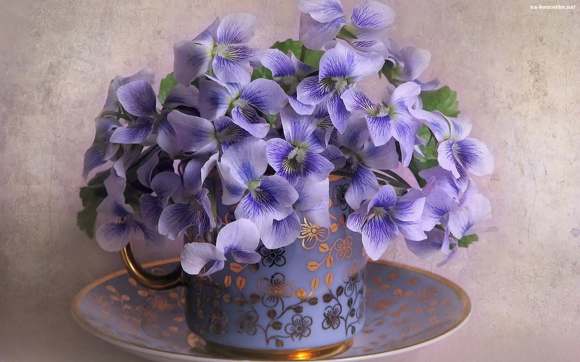 Talerzyk, Fioletowe, Fiołki, Bukiet, Filiżanka na Komórkę